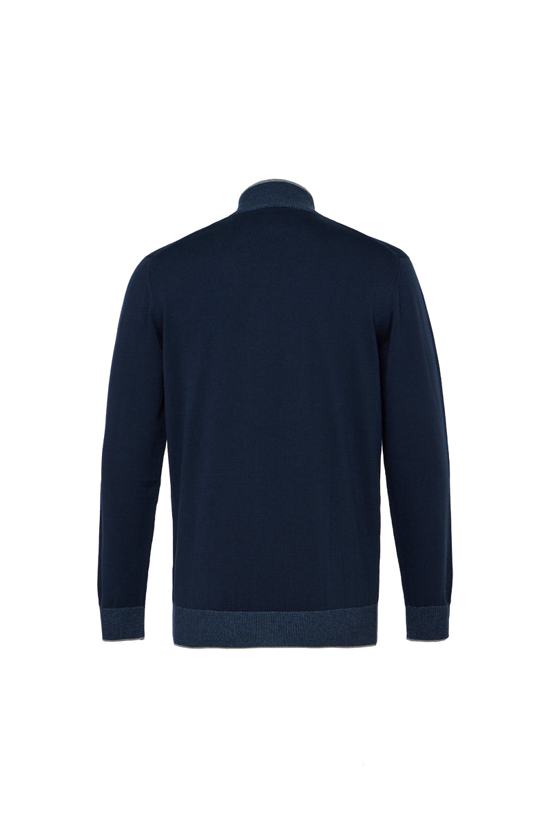 Black Quarter Zip Paneled Wave Jacquard Sweater