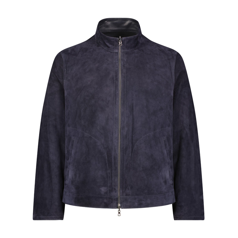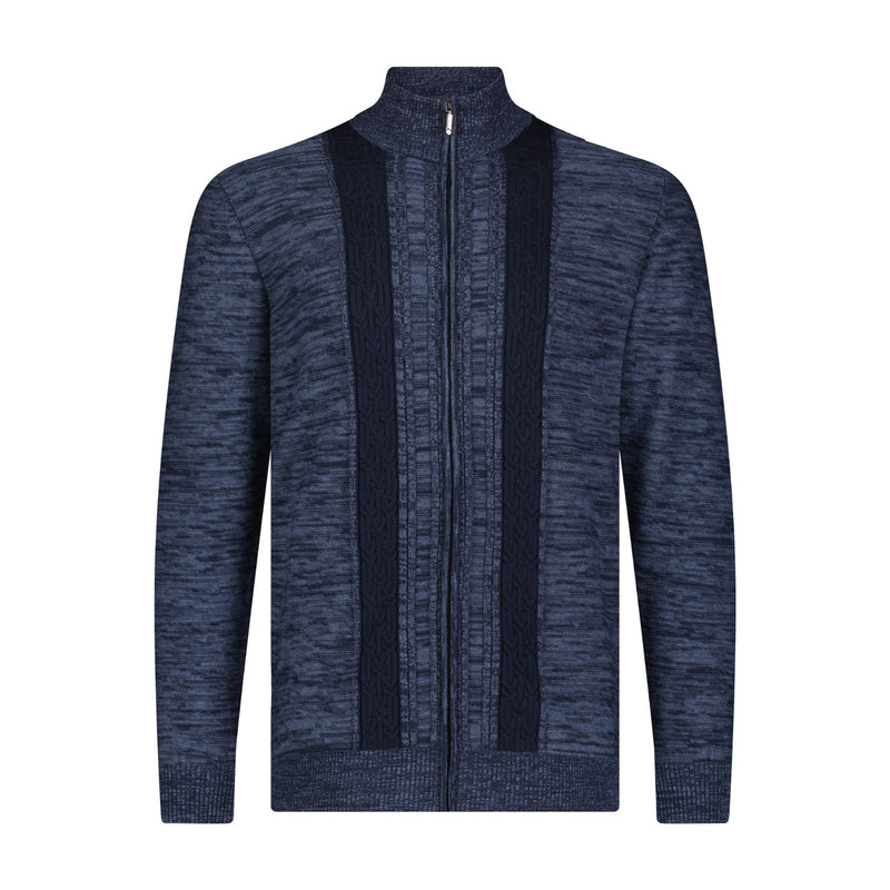 Navy Jacquard Vertical Stripe Full Zip Sweater
