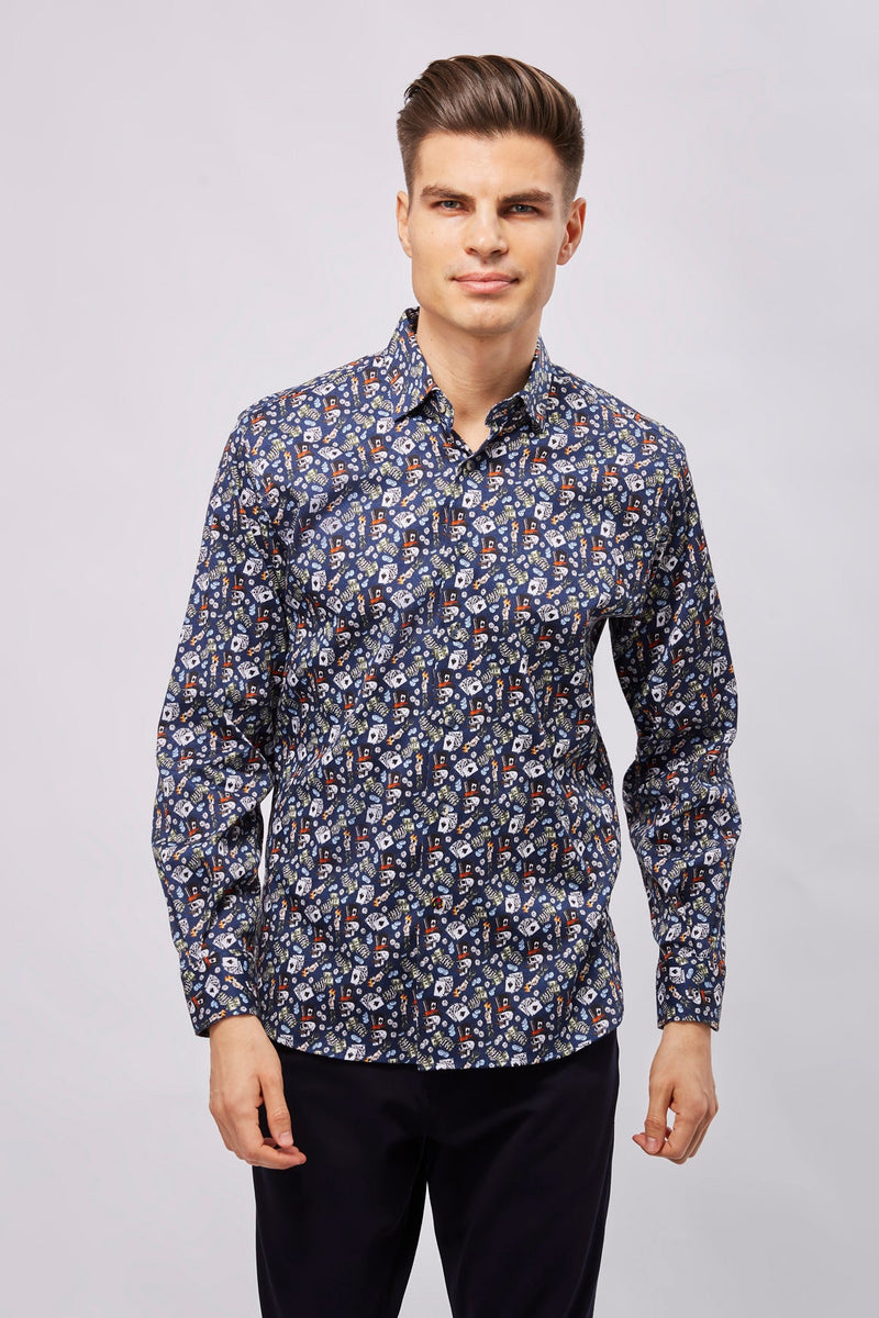 Navy with Cornflower Blue Circular Chain Jacquard Shirt