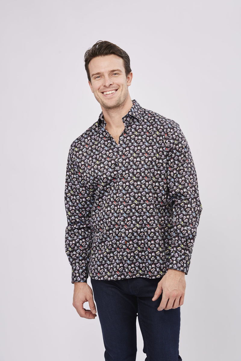 Black with Multicolor Skulls Shirt