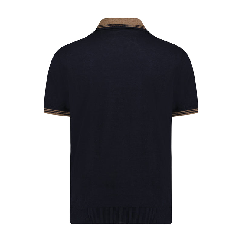 Navy and Ecru Top Stripe Short Sleeve Knit Polo