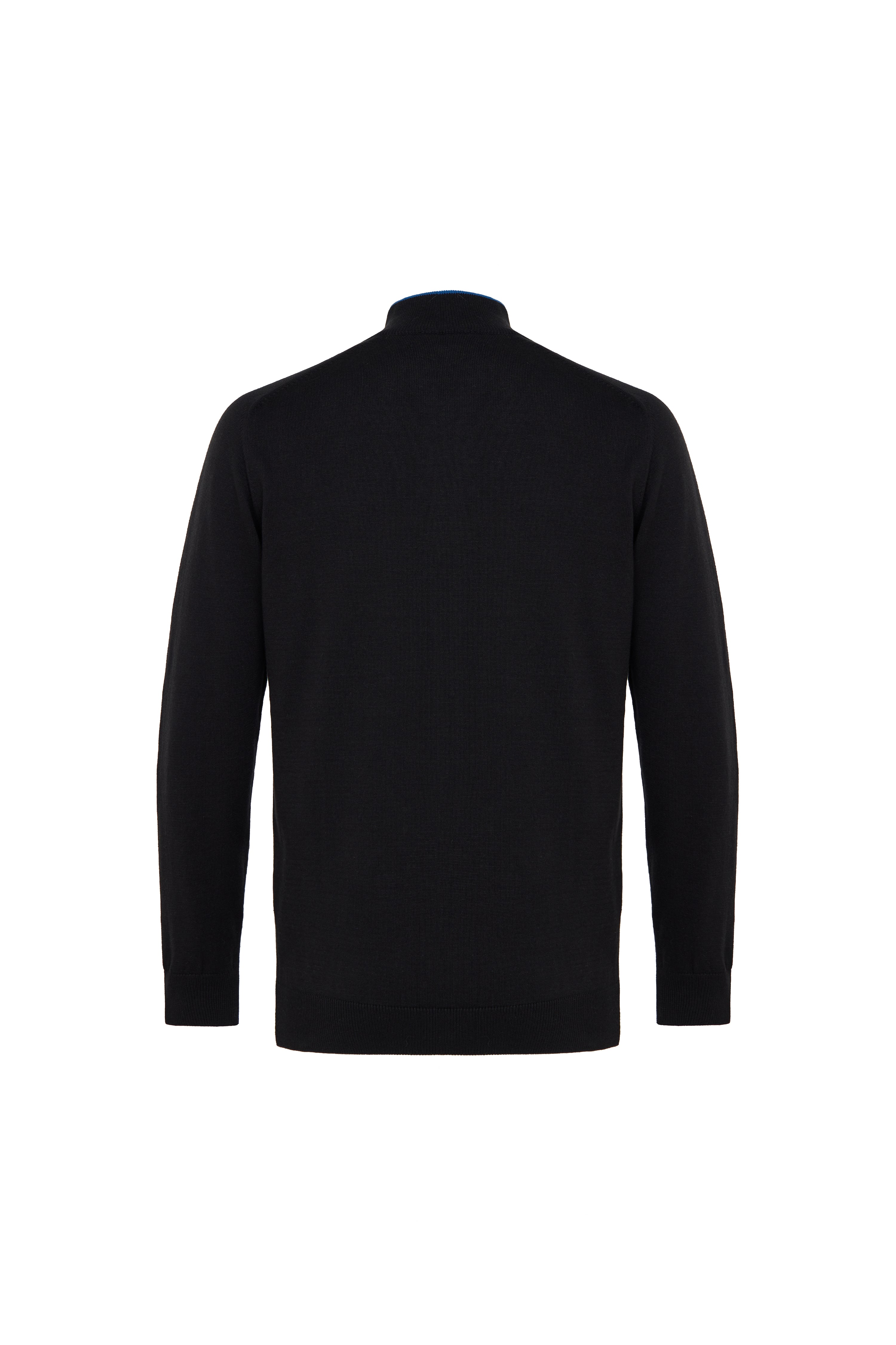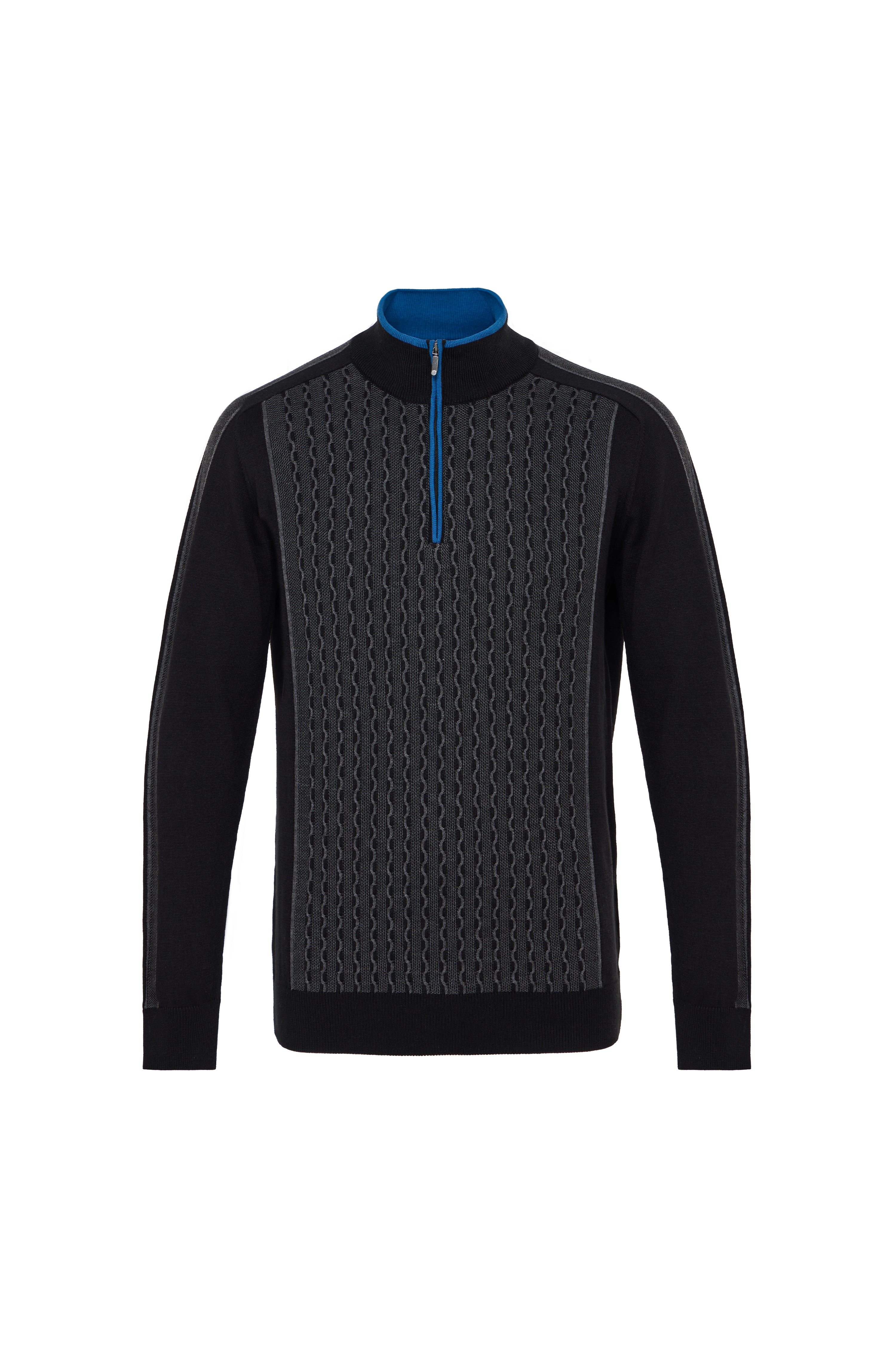 Black Quarter Zip Paneled Wave Jacquard Sweater