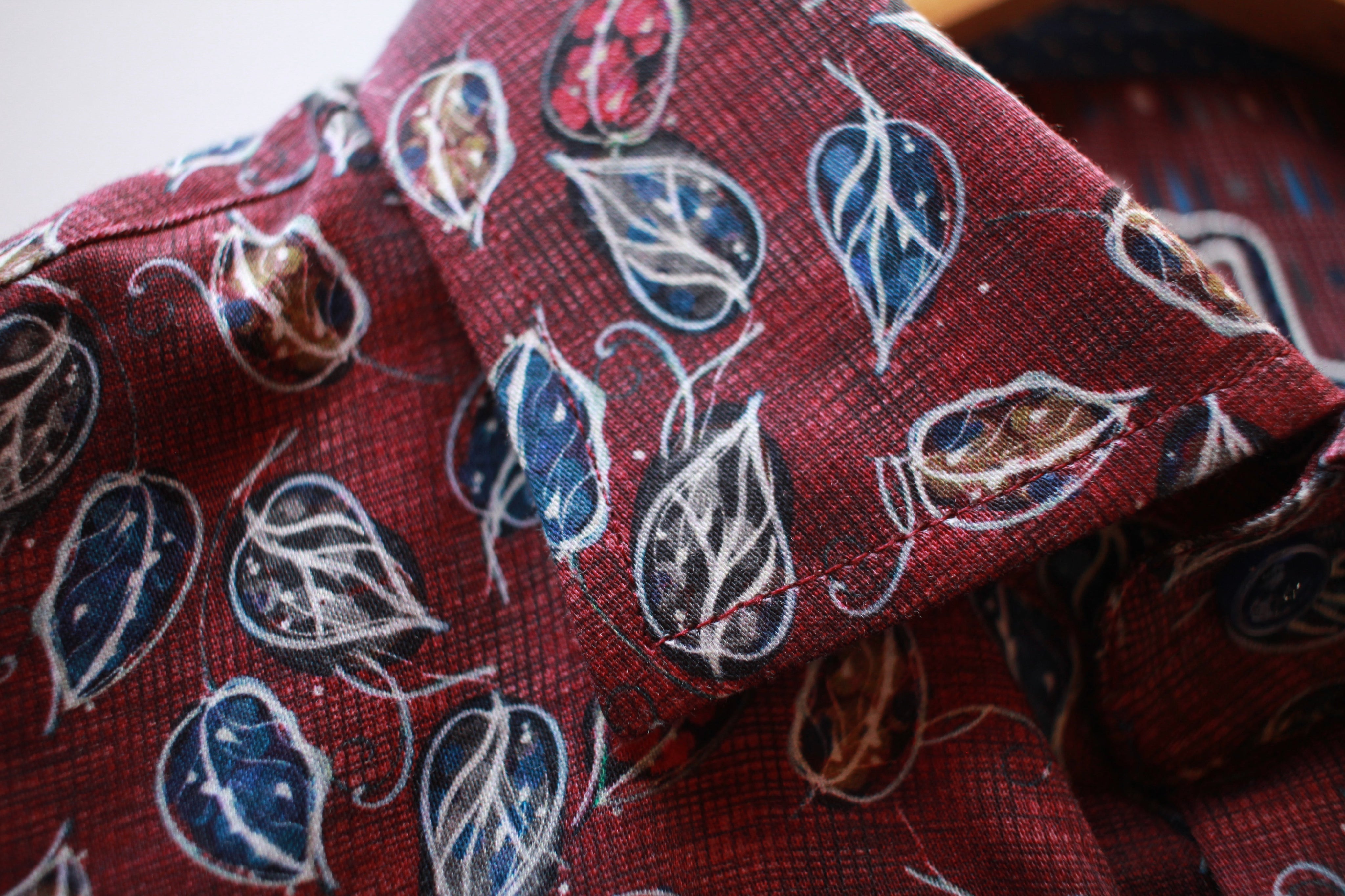 Burgundy with Red, Blue and Brown Leaves