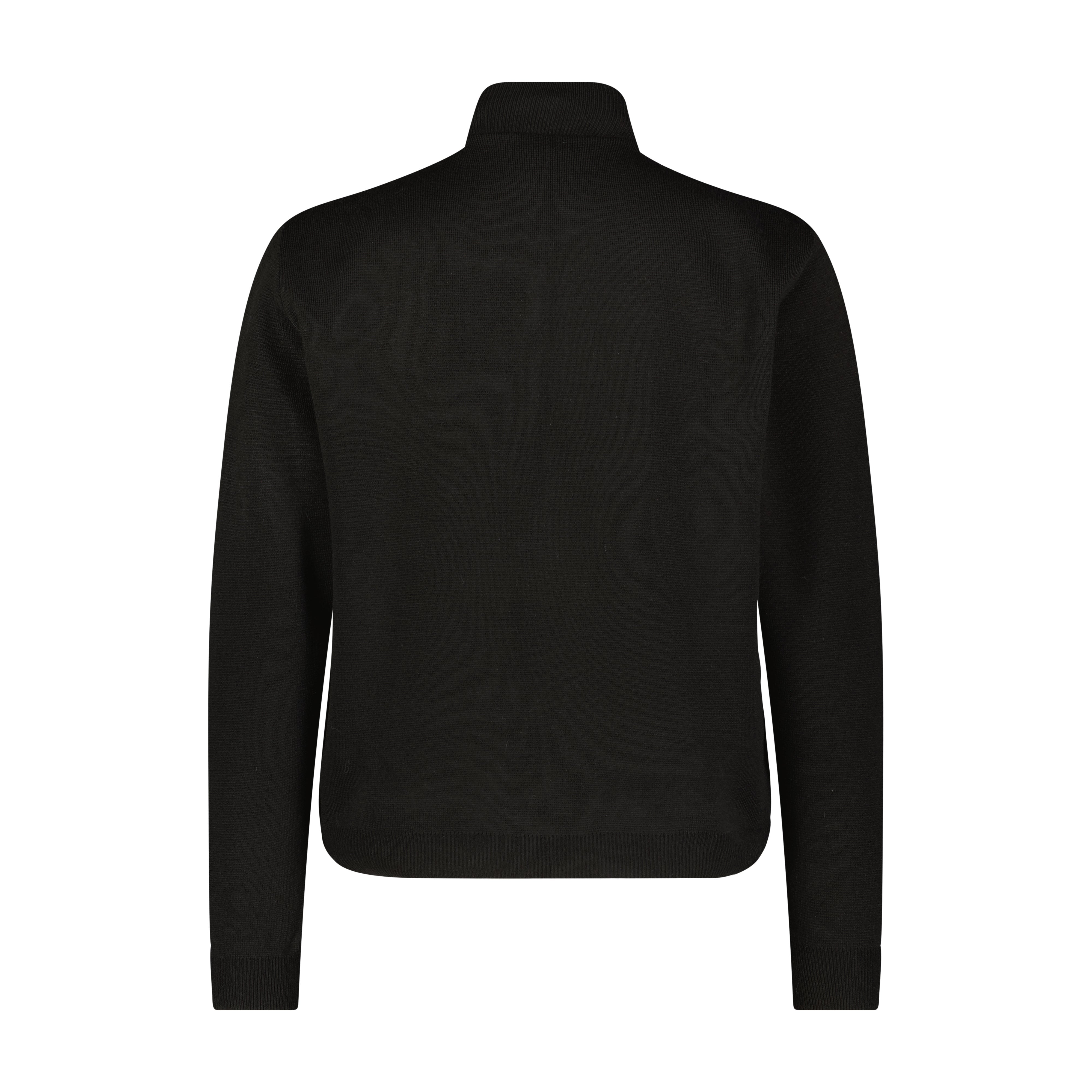 Channel quilted reversible puff rain jacket with knit sleeves in black.