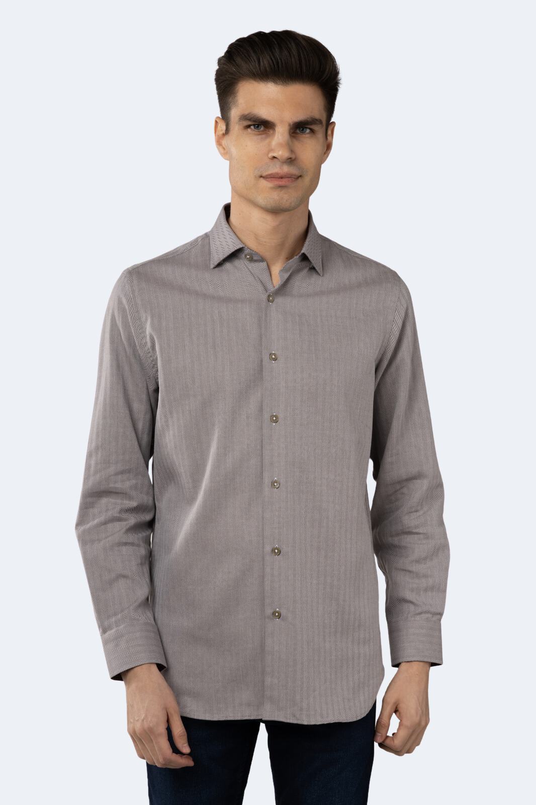 Look your best with this luxurious Jacquard shirt from Luchiano Visconti. Featuring a sophisticated brown and white self stripe pattern, you'll be sure to make a lasting impression wherever you go. Crafted with long sleeves, a button-down front and a modern fit, you'll be wearing this timeless piece for years to come.