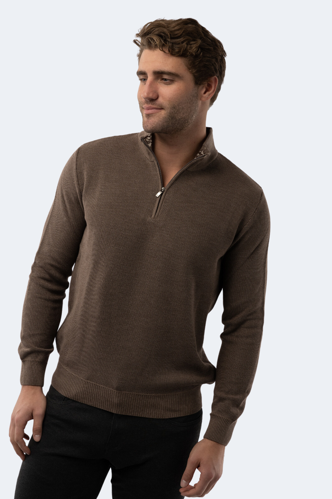 Elevate your wardrobe with Luchiano Visconti's Dark Mink Melange Quarter Zip. Its 3/4 zip and pullover features add an element of luxury to the modern silhouette, perfect for semi-casual encounters. With its sophisticated design, this quarter zip is the perfect addition to any stylish wardrobe.