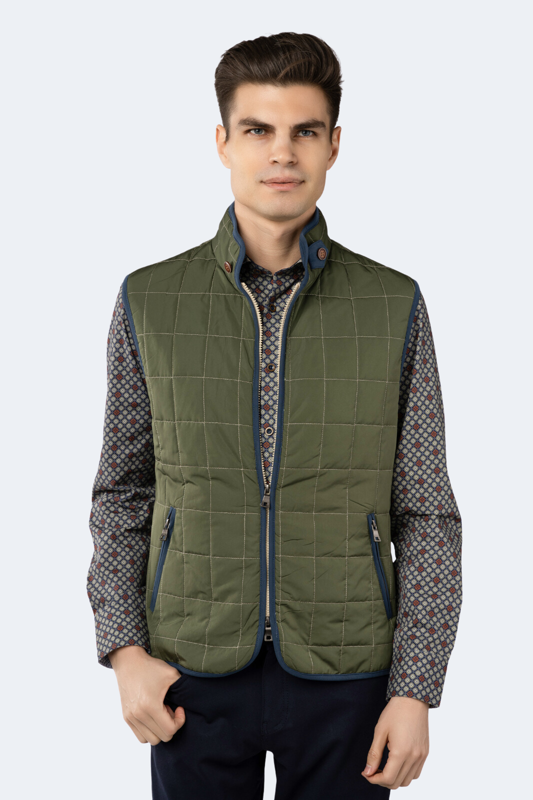 A luxurious Essential for your wardrobe, the FW23 Green Quilted Zip Up Vest from Luchiano Visconti brings a sophisticated edge to any look. Crafted with a three-layer fabric for added durability, this vest is moisture-wicking, anti-microbial, and water-repellent - a perfect combination of function and fashion. Recyclable so you can feel good about your purchase.