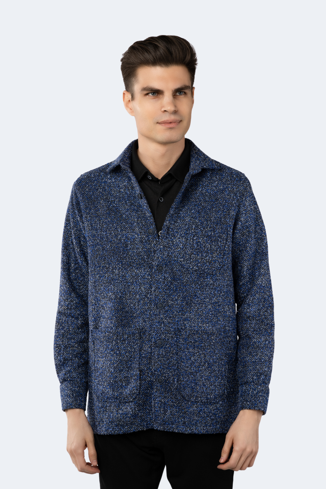Experience sophistication and elegance with the FW23 Multi Blue Tweed Knit Shirt from Luchiano Visconti. Crafted from a luxurious Tweed knit, this shirt adds a touch of refinement to any look, with a classic button-down front and two practical front pockets. Wear as a tailored shacket or a stunning shirt.