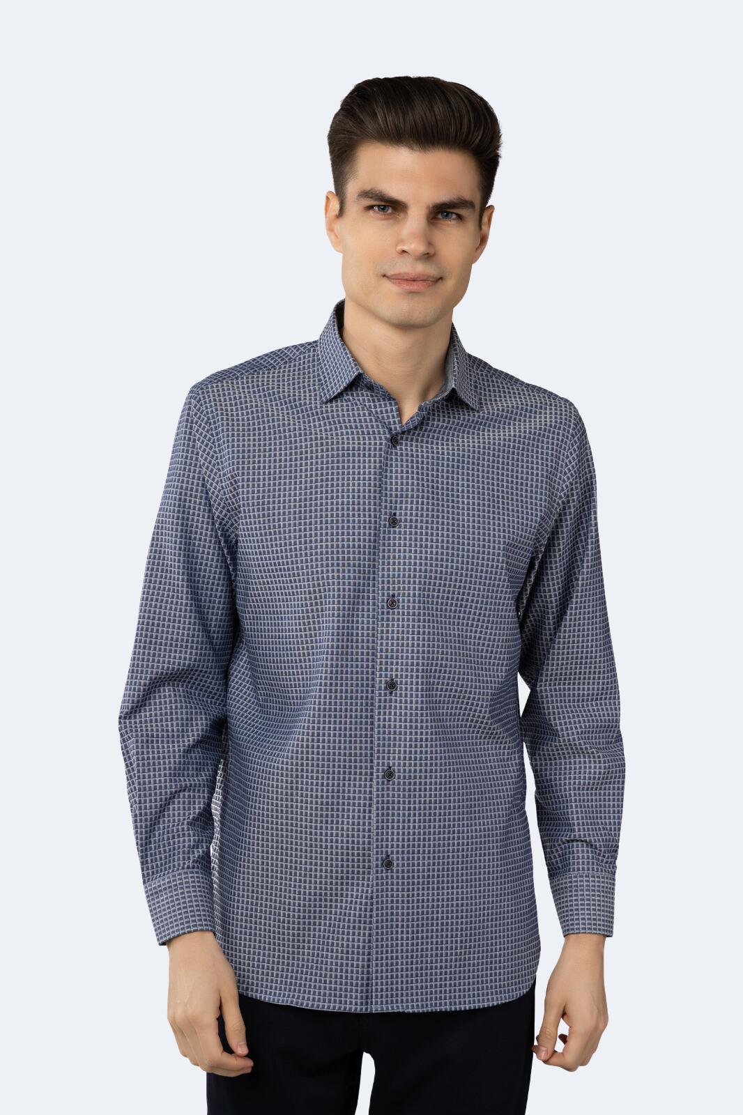 Luchiano Visconti's shirt is a timeless and sophisticated garment, expertly crafted with a navy and grey check jacquard for a modern and refined look. Its soft stretch fabric and easy-care finish provide all-day comfort, while its button-down design and Long sleeves provide a stylishly elegant fit. A classic addition for any wardrobe.