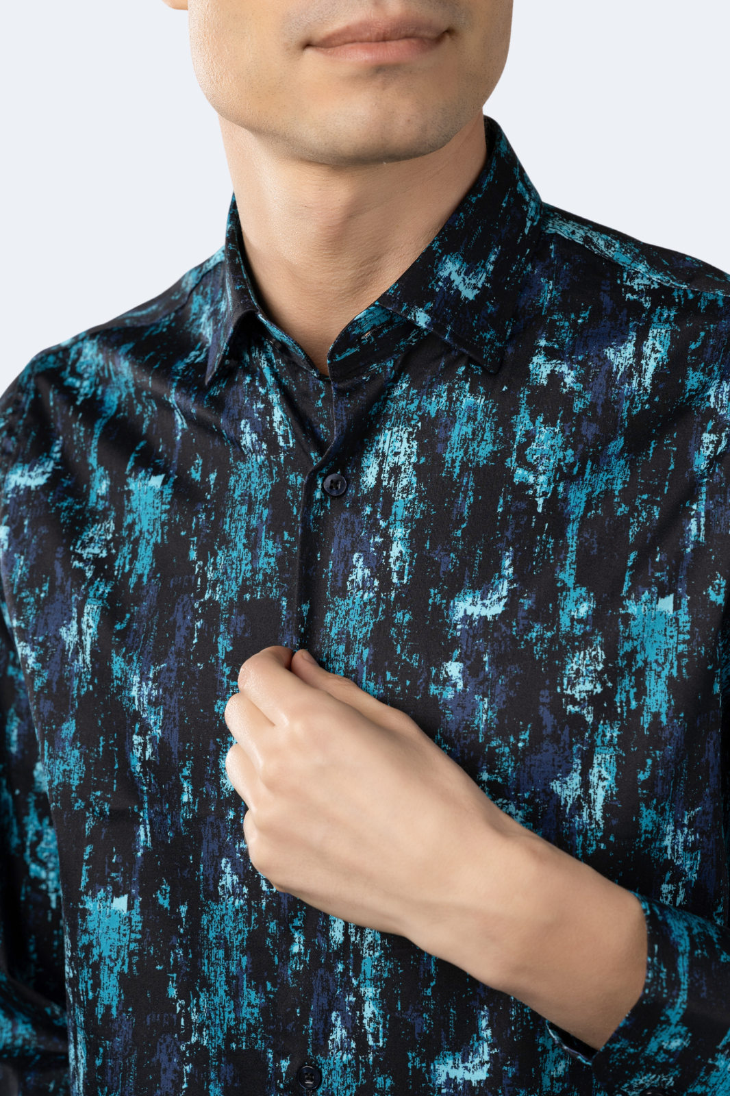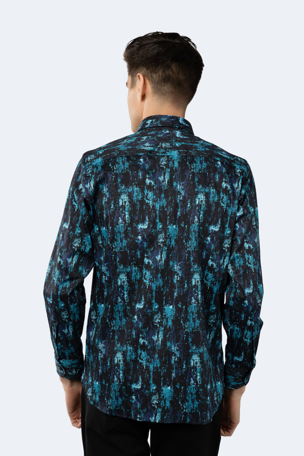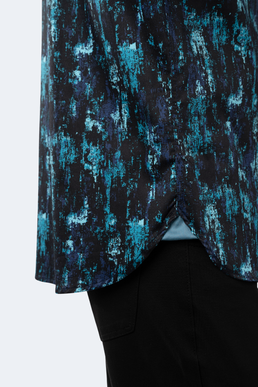 Dress to impress with this Navy with Teal Marble Shirt by Luchiano Visconti. Crafted from natural stretch fabric and designed with a button-down closure, this sophisticated shirt complements any elegant look with its eye-catching marble pattern. Perfect for any formal event.