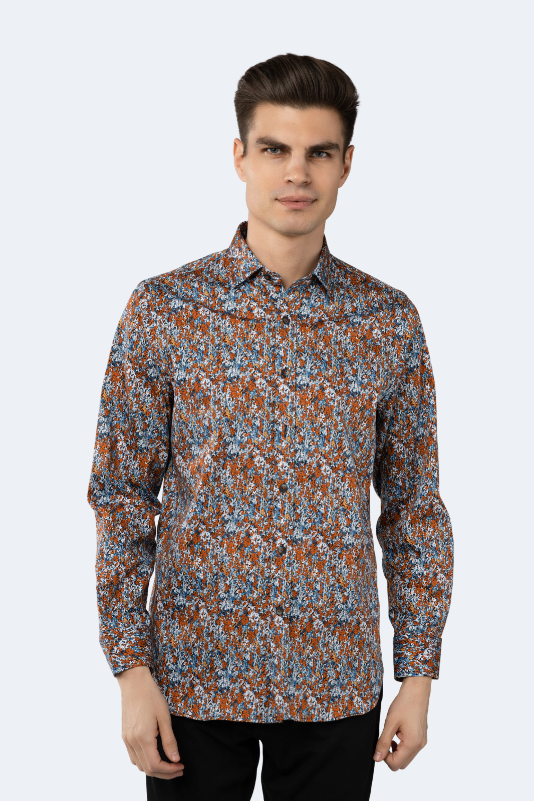Make a statement with this exquisite, FW23 Orange, Multi Blue and White Musical Note Shirt by Luchiano Visconti. Featuring natural stretch and a button-down style, it is comfy enough to wear all day without compromising on the details. The vibrant musical note print adds a splash of color and makes this piece a true showstopper.