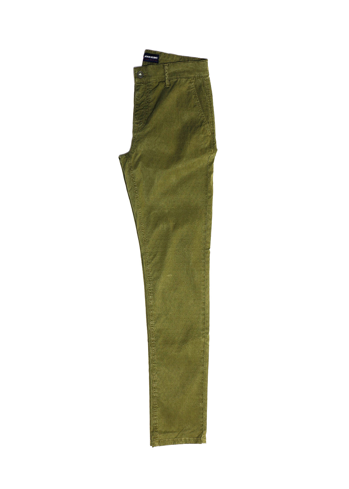 Green pants made with Tencel Jacquard Stretch and Performance fabric.