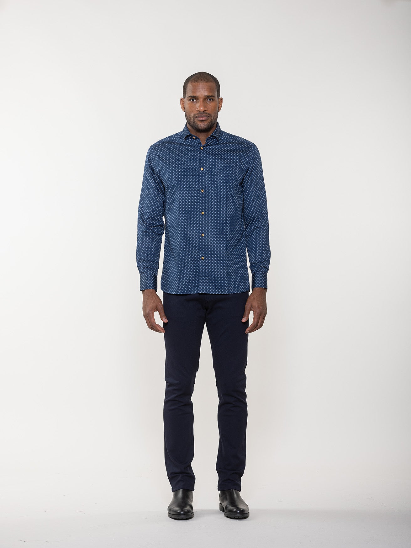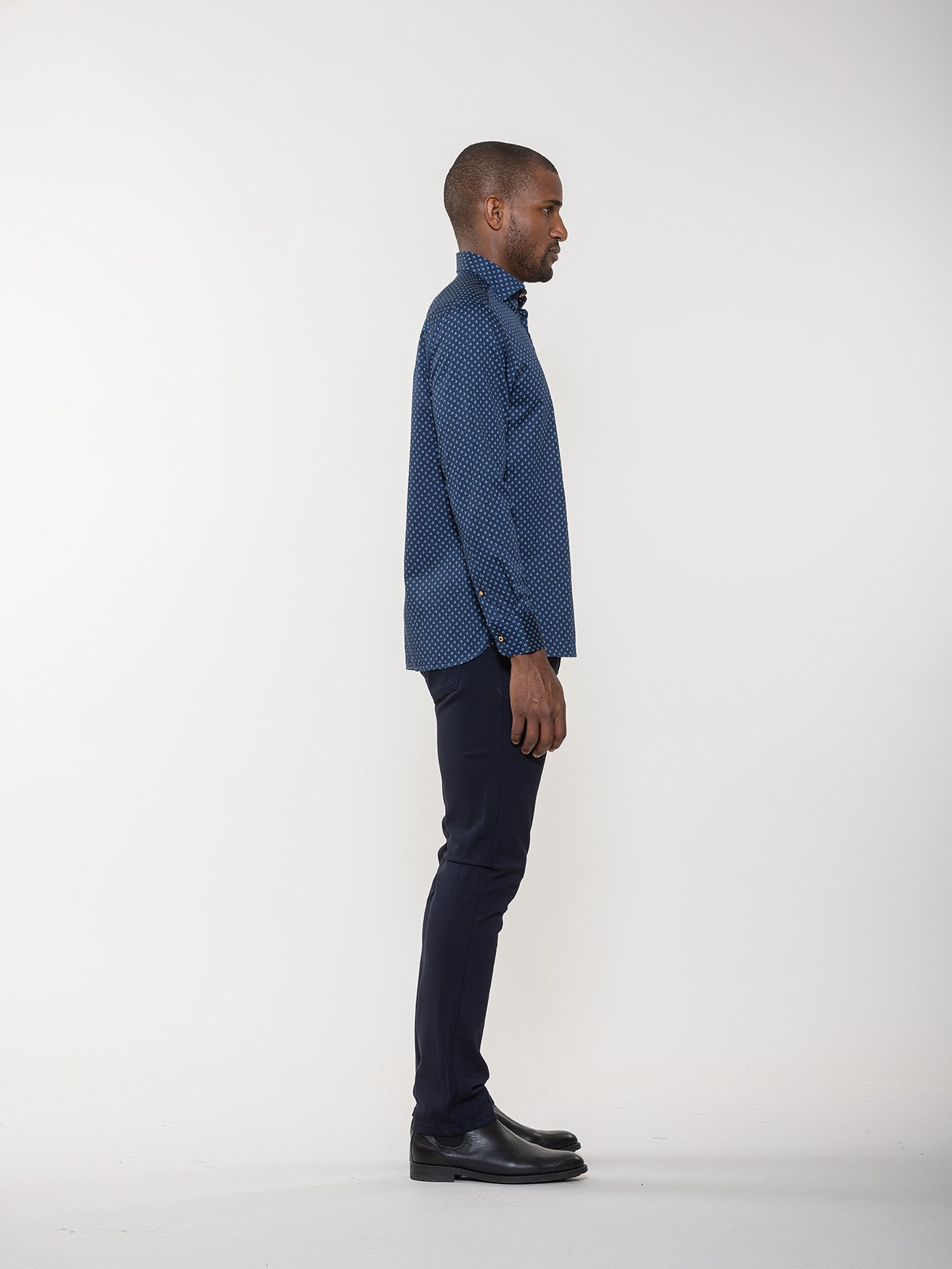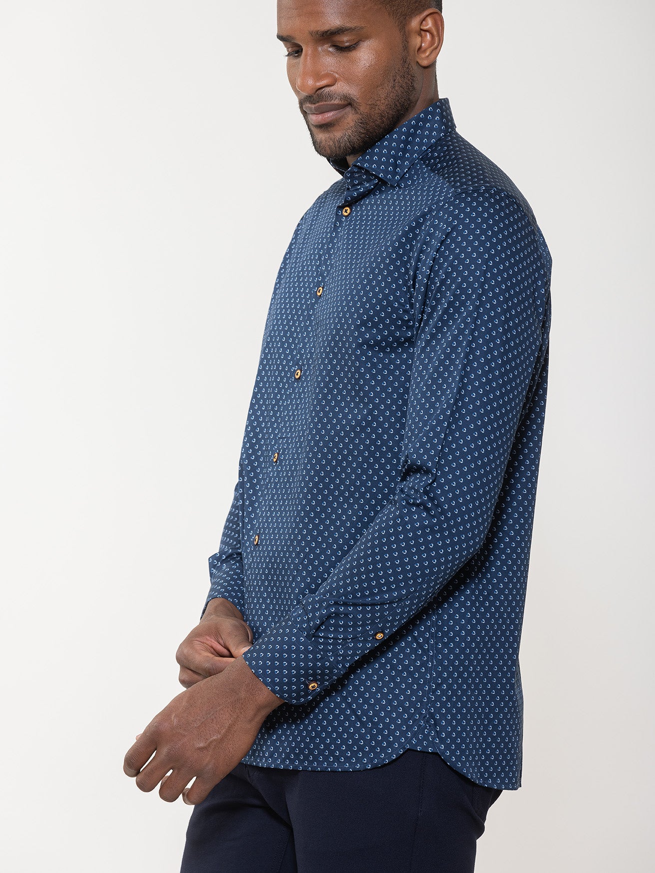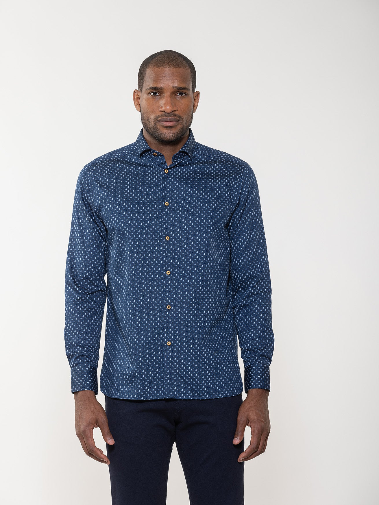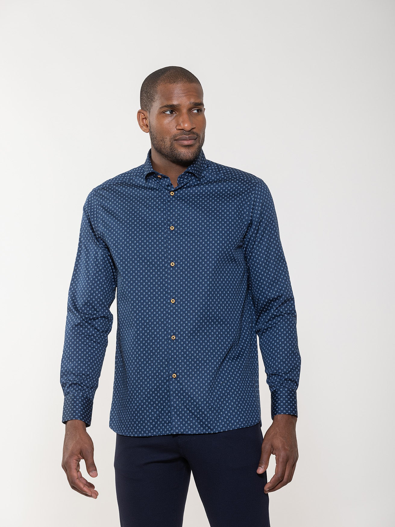 Our Geometric Sphere Print Long Sleeve Woven Shirt with Euro collar and round cuff is the quintessential shirt for wearing to work or for going out for the evening. Premium quality fabric, made in Europe, is tightly woven to last multiple washes and wears without fading or deteriorating.