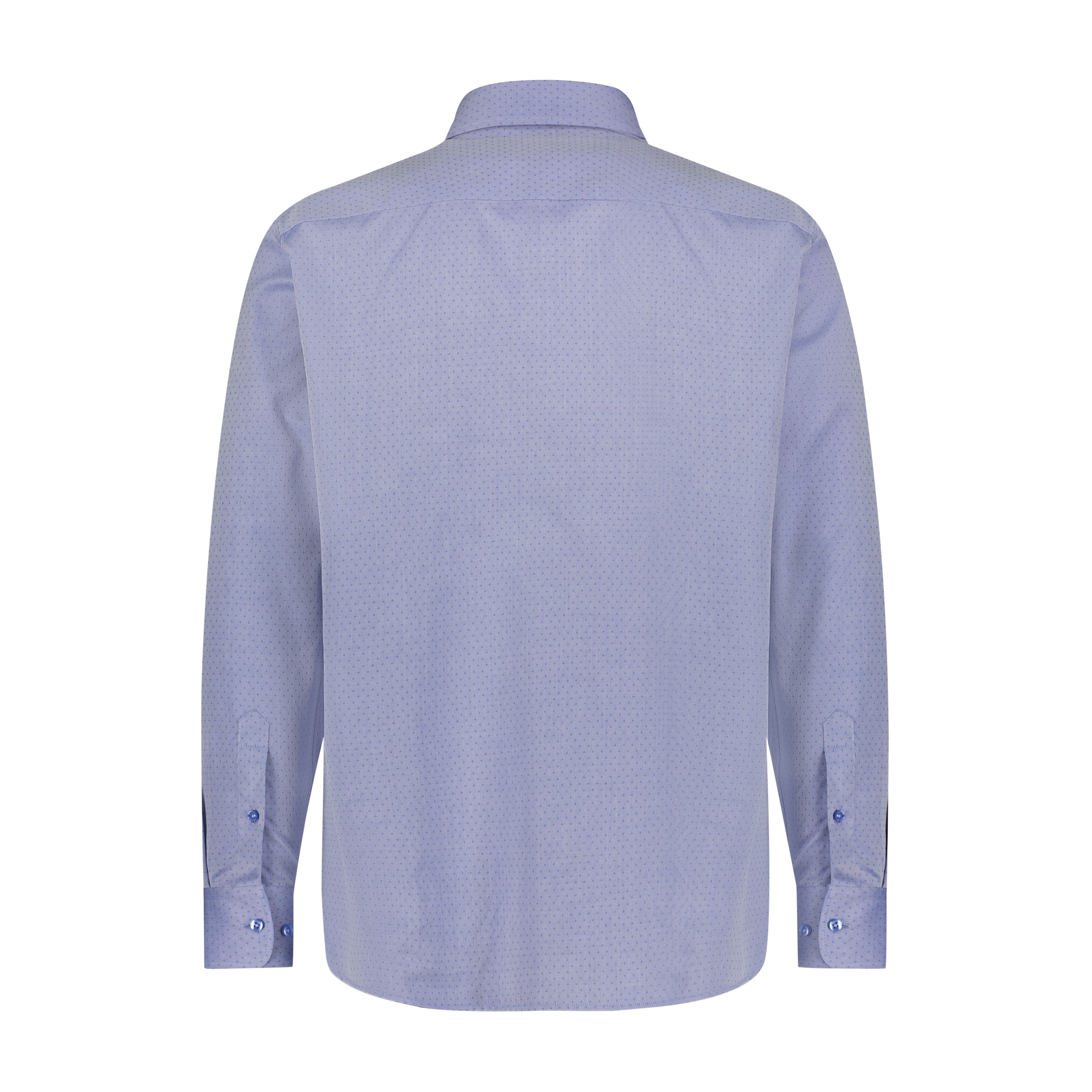 Harvey iridescent dobby micro dot long sleeve woven shirt with Italian spread collar & convertible round cuff.