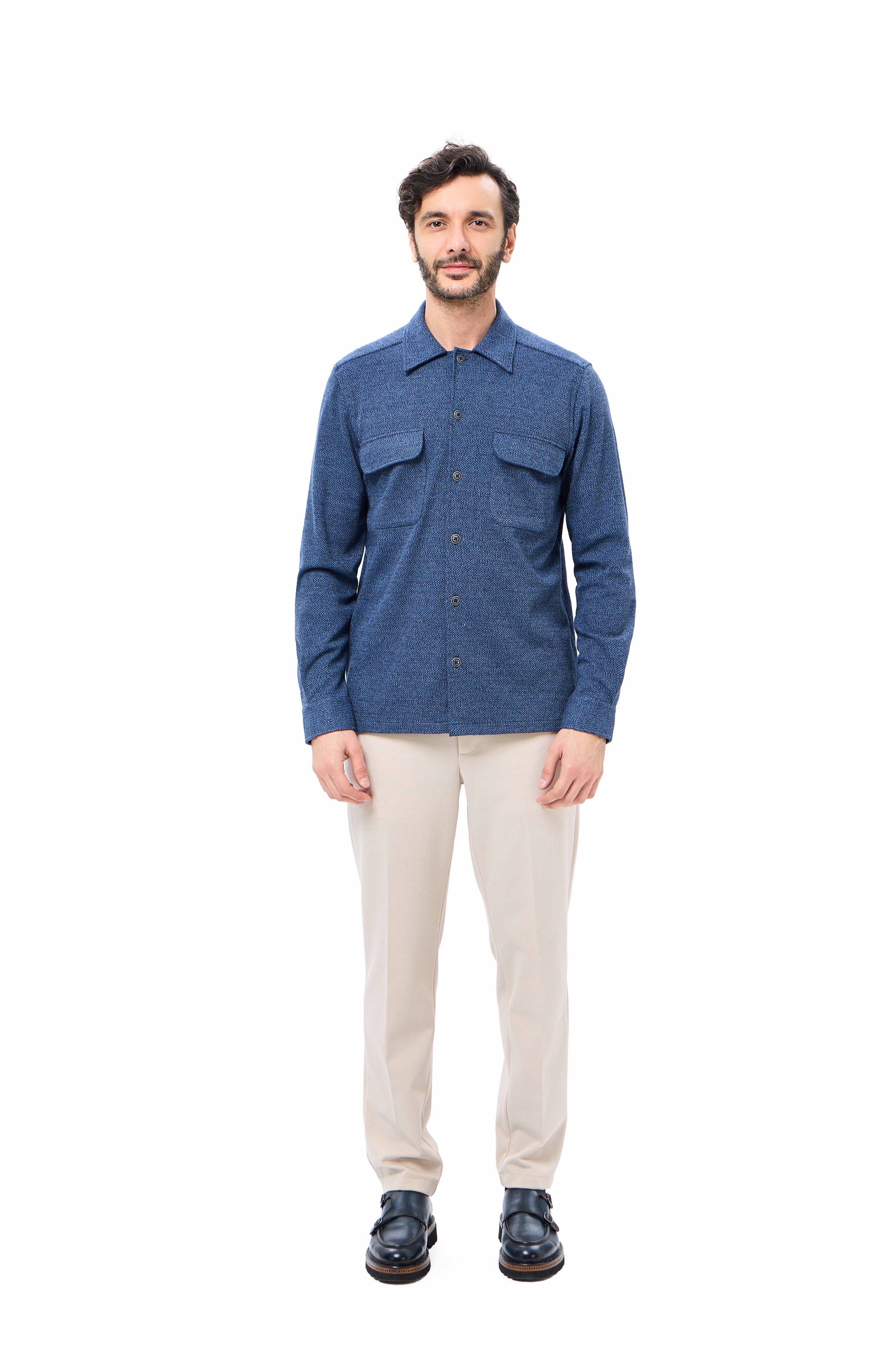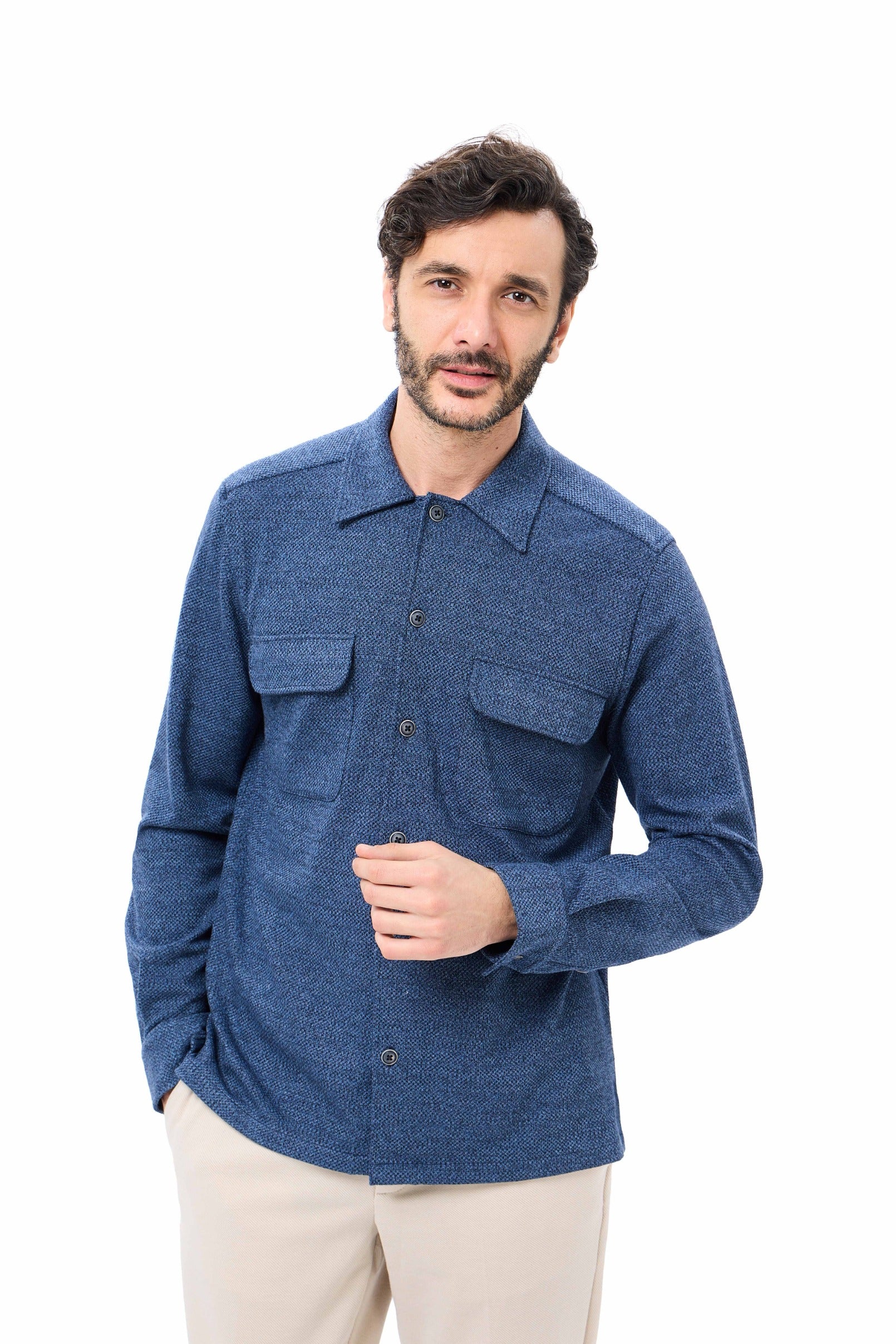 Indigo Dobby Double-Faced Knit Shirt Jacket
