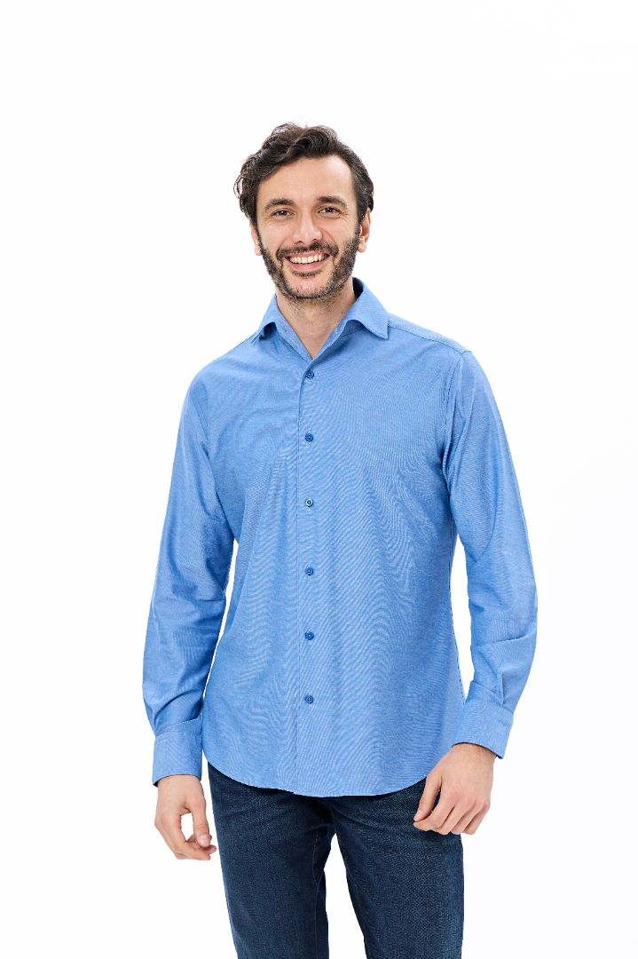 Upgrade your wardrobe with this Indigo One-Piece Collar Shirt, crafted for all-day performance and modern polish. Made from a sustainable blend of 60% organic cotton and 40% recycled polyester, it features 6-way stretch for unmatched comfort and movement. Designed with moisture-wicking, non-iron, and quick air-dry technology, this shirt keeps you looking sharp with minimal effort. The sleek one-piece collar adds a refined touch, making it versatile enough for both work and evening wear. A must-have Fall season essential that blends sustainability, performance, and timeless style.