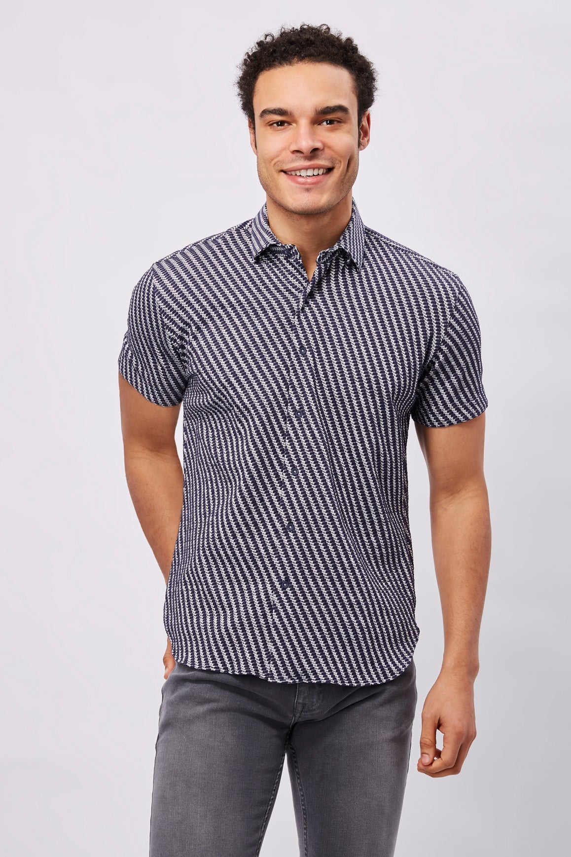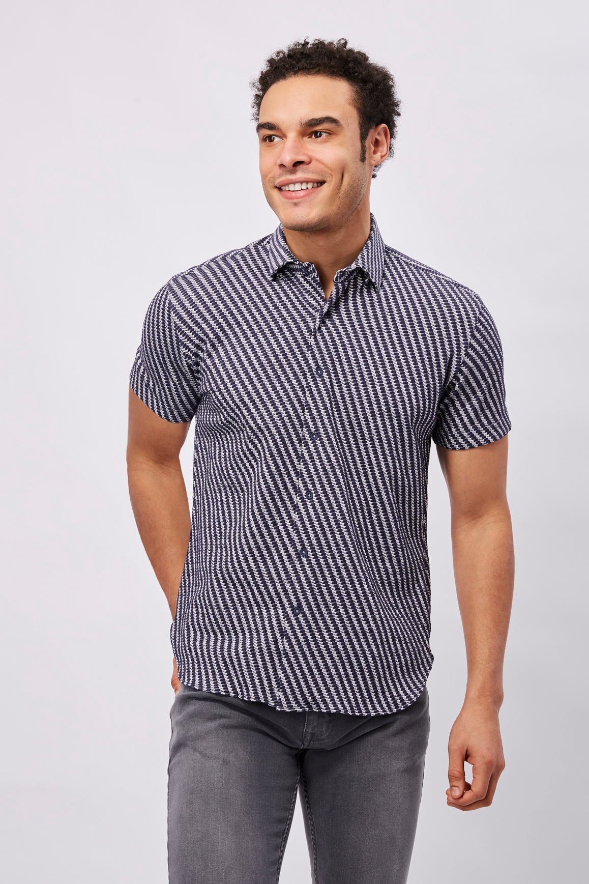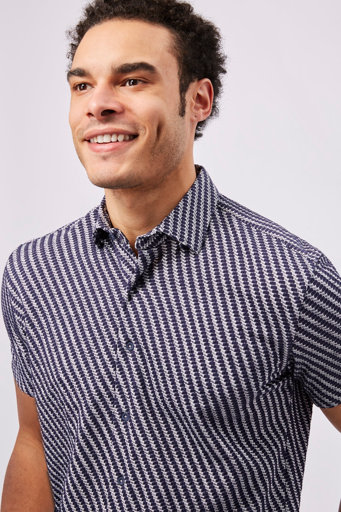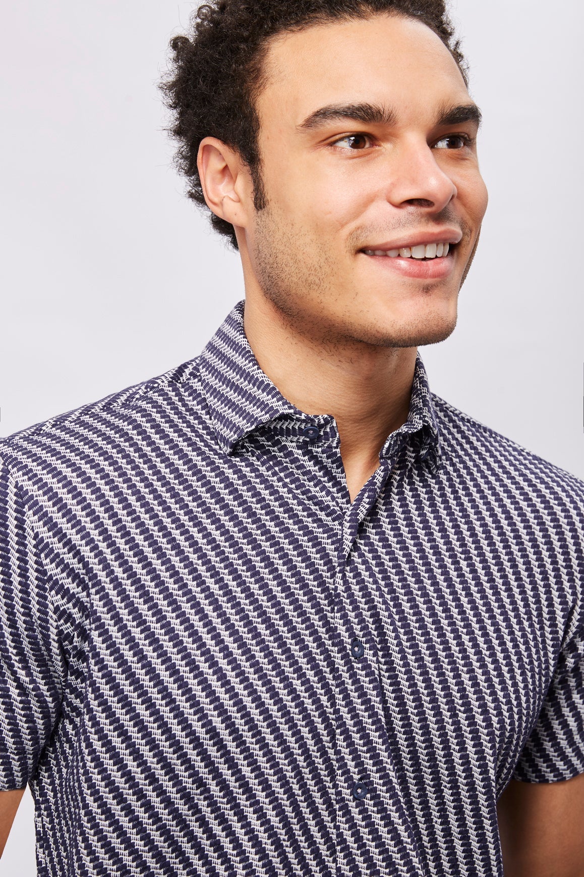 Max Colton Navy and White Honeycomb Short Sleeve Jersey Knit