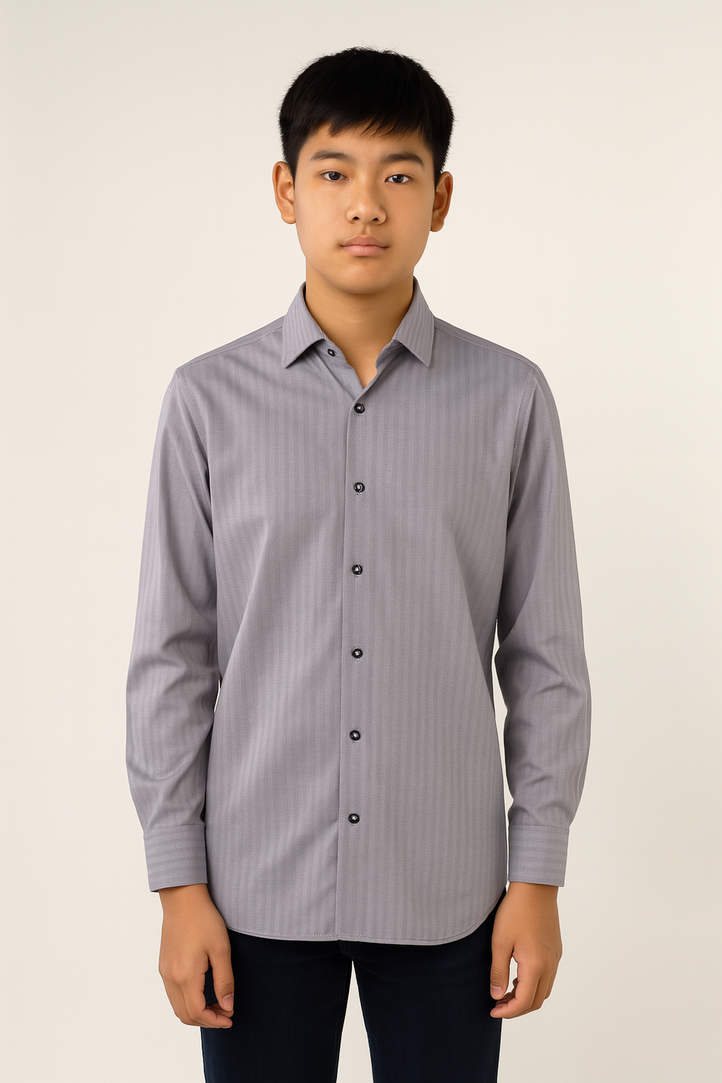 Navy and White Self Stripe Jacquard Boys Shirt
