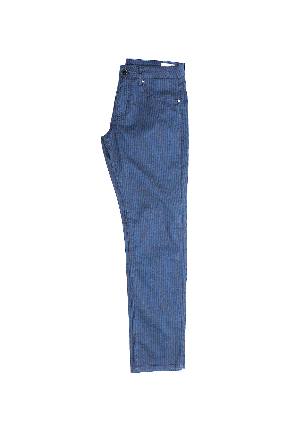 Navy with blue stripes denim jeans made with performance fabric that you can wash and wear.