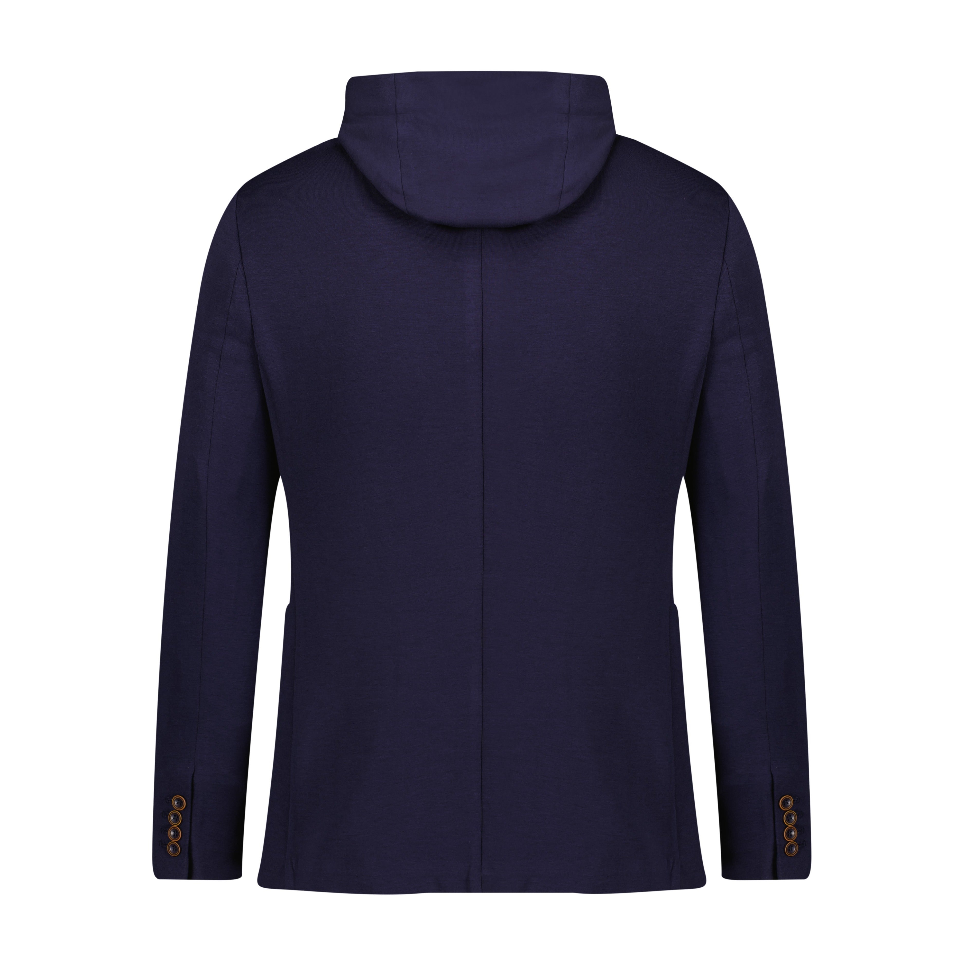 Immerse yourself in timeless sophistication with this exquisite Navy Knit Hooded Button Sport Coat from Luchiano Visconti. Crafted with luxurious stretch knit, it will hug your frame and give you a timeless silhouette. Elevate your wardrobe with this timeless piece of art, perfect for a night out or a special occasion.
