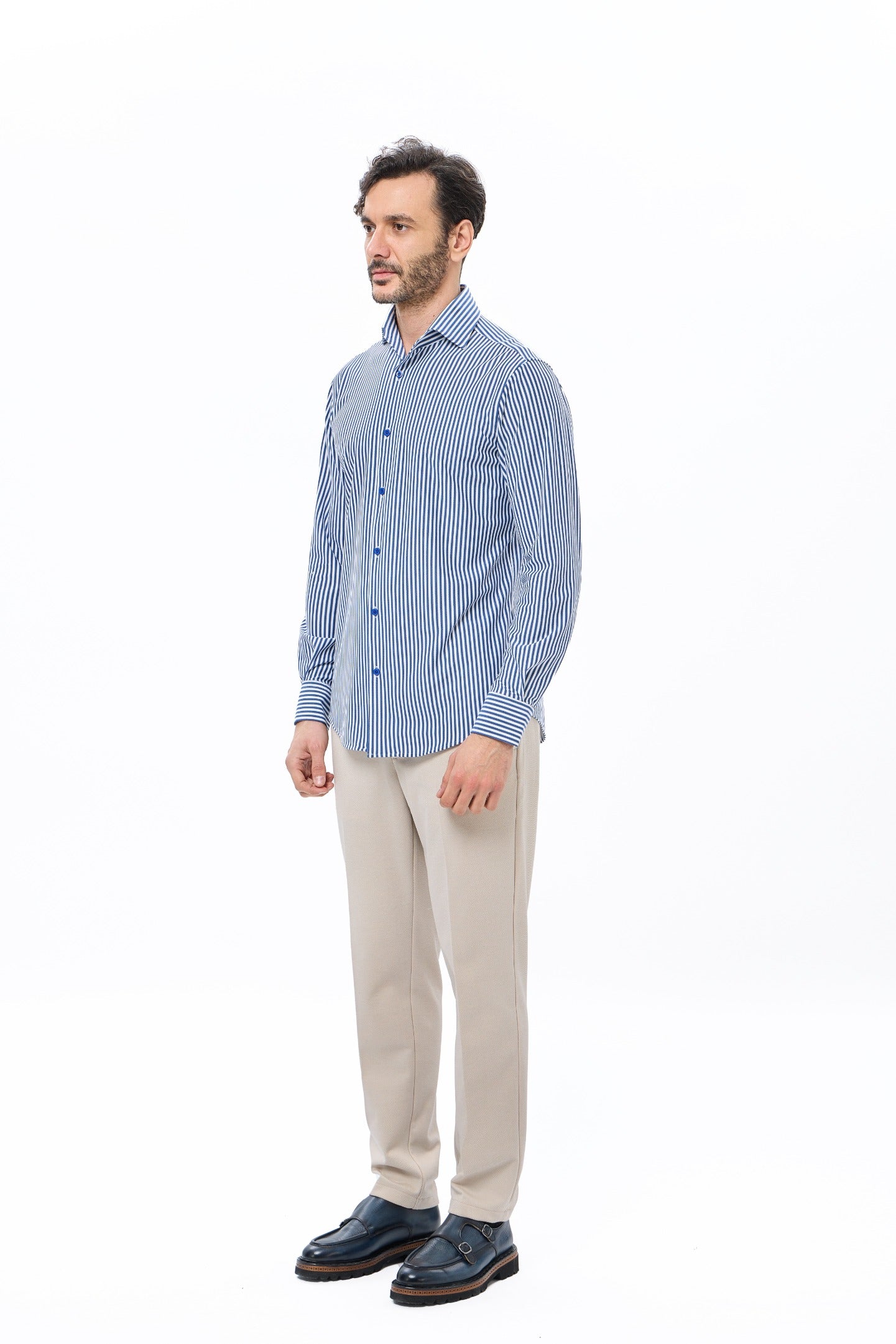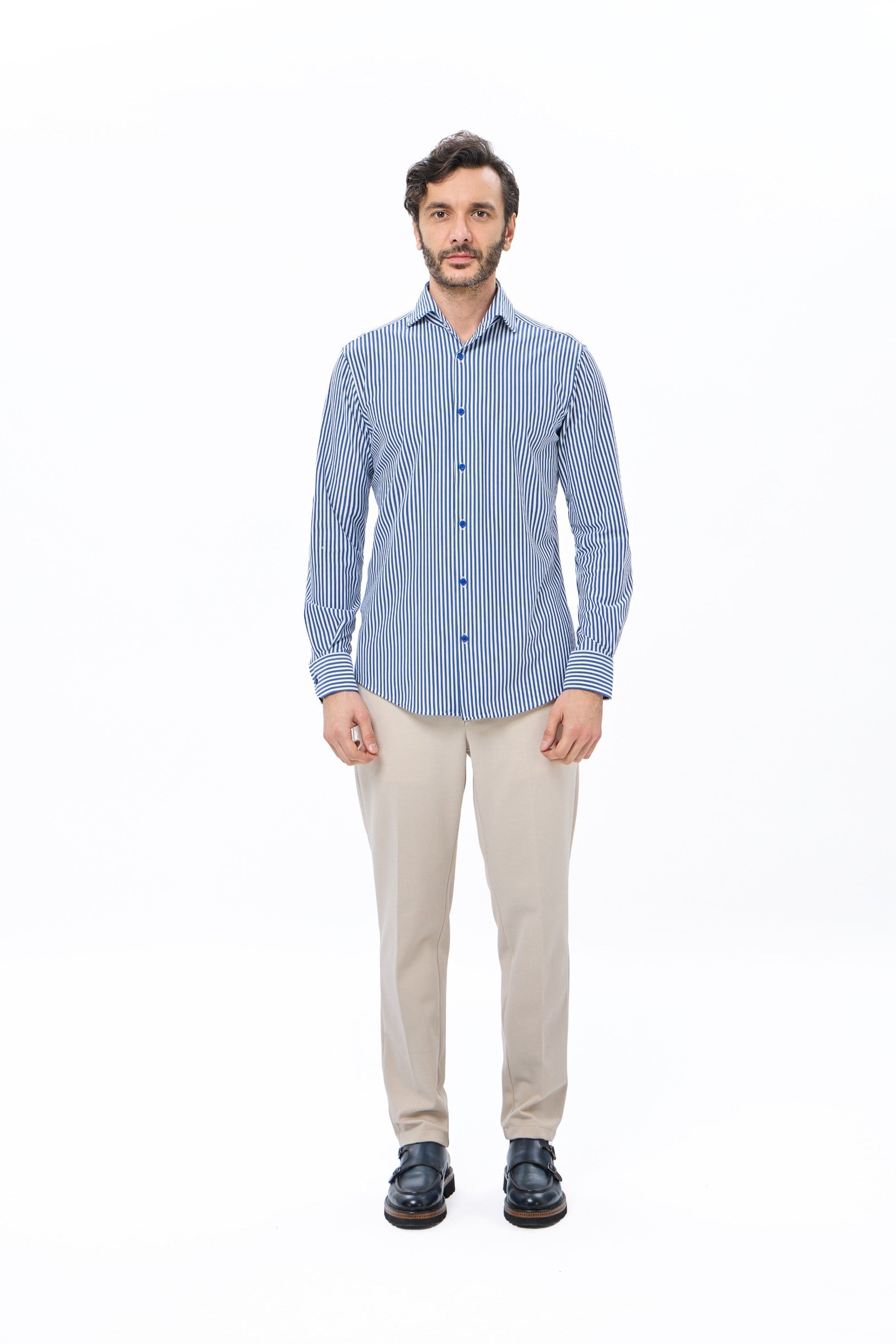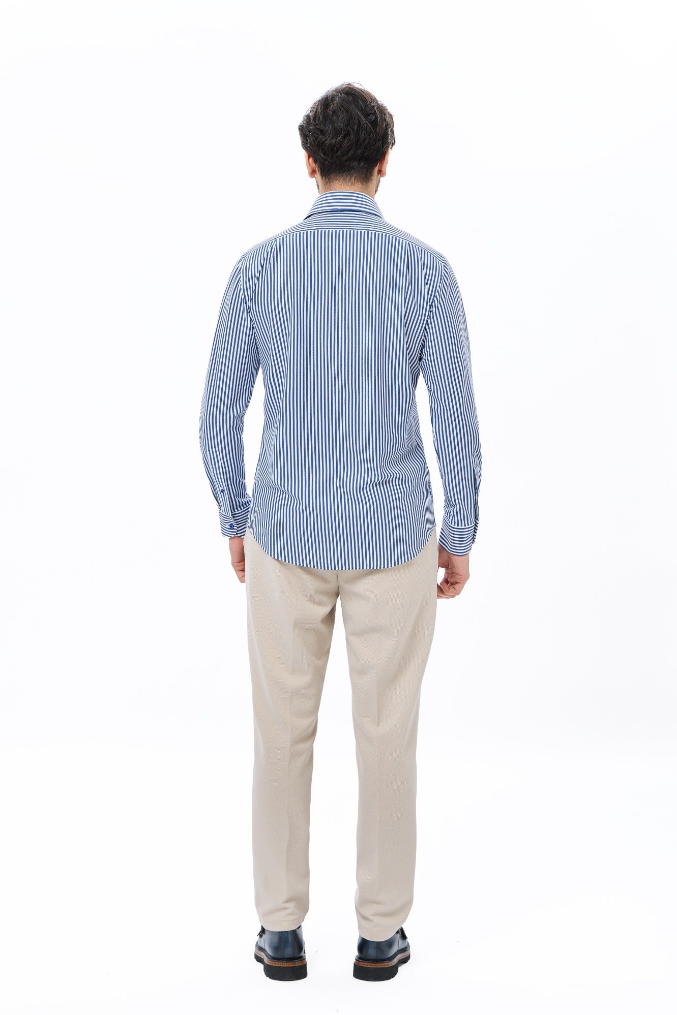 Navy Stripe One-Piece Collar Performance Stretch Shirt