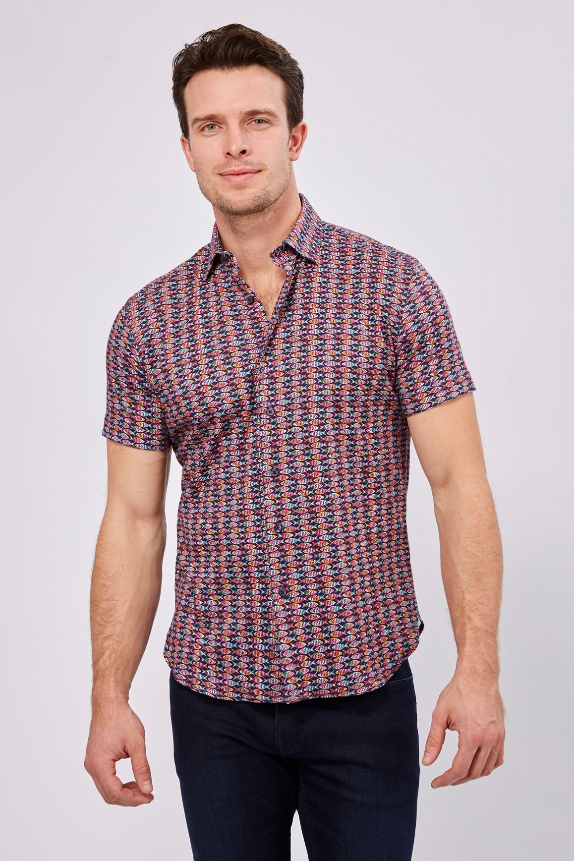 Max Colton Purple with Multicolor Short Sleeve Jersey Knit
