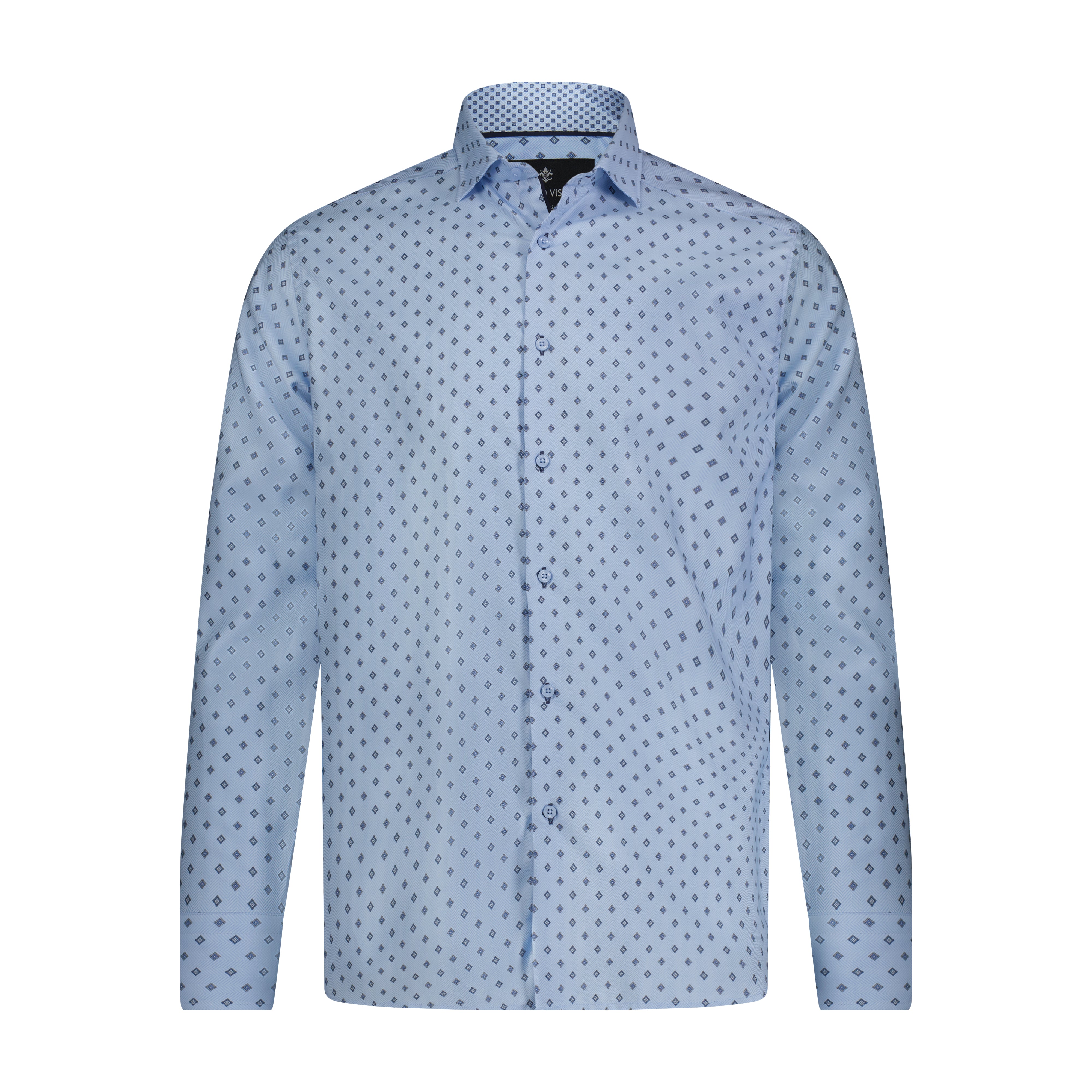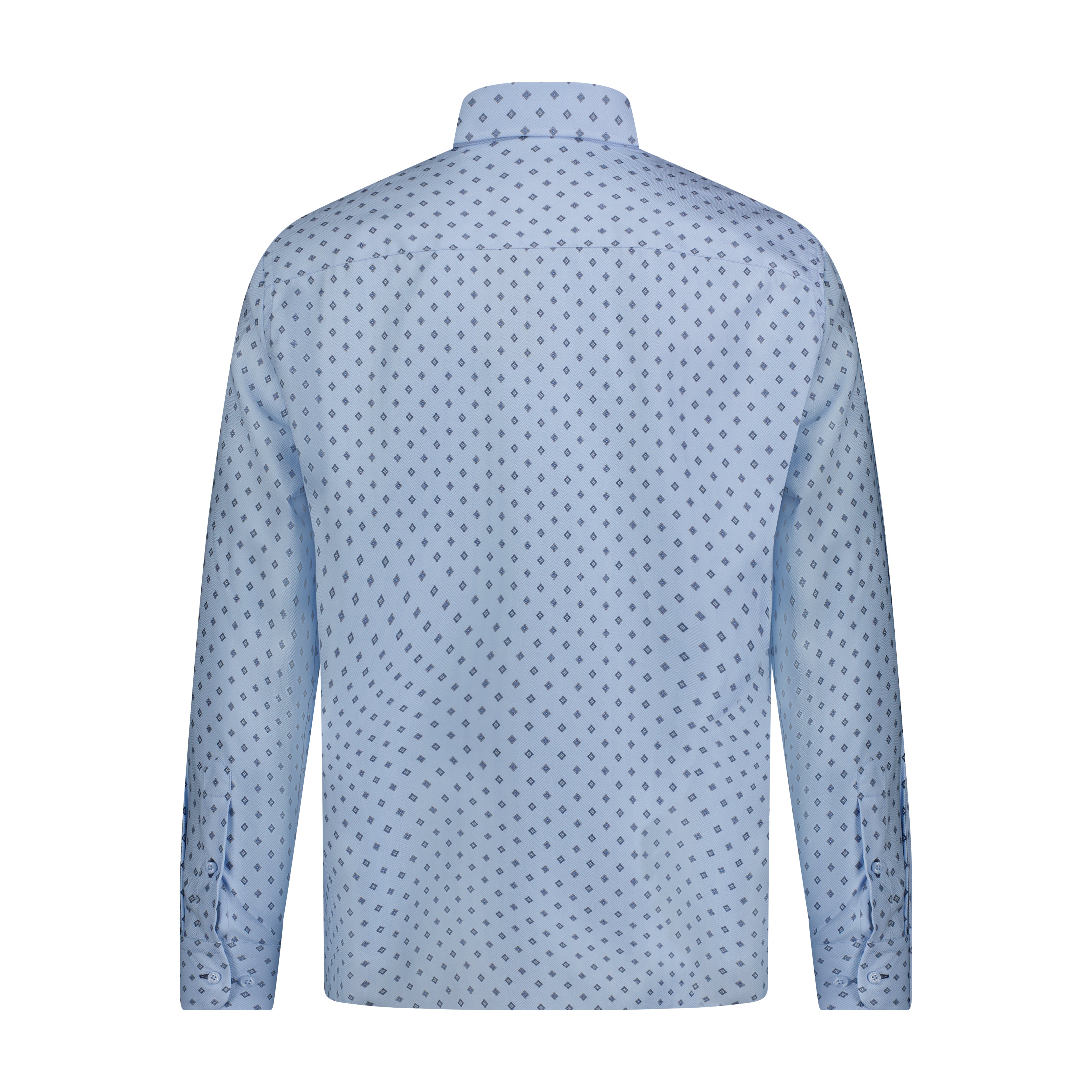 Experience the luxurious sophistication of the Aqua Teal Print Long Sleeve Shirt from Luchiano Visconti. Crafted from a dobby herringbone mercerized cotton adorned with geometrical print, this comfort fit shirt is characterized with printed detail on the inner collar, inner cuff and inner yoke. Perfect for stylishly elevating any look.