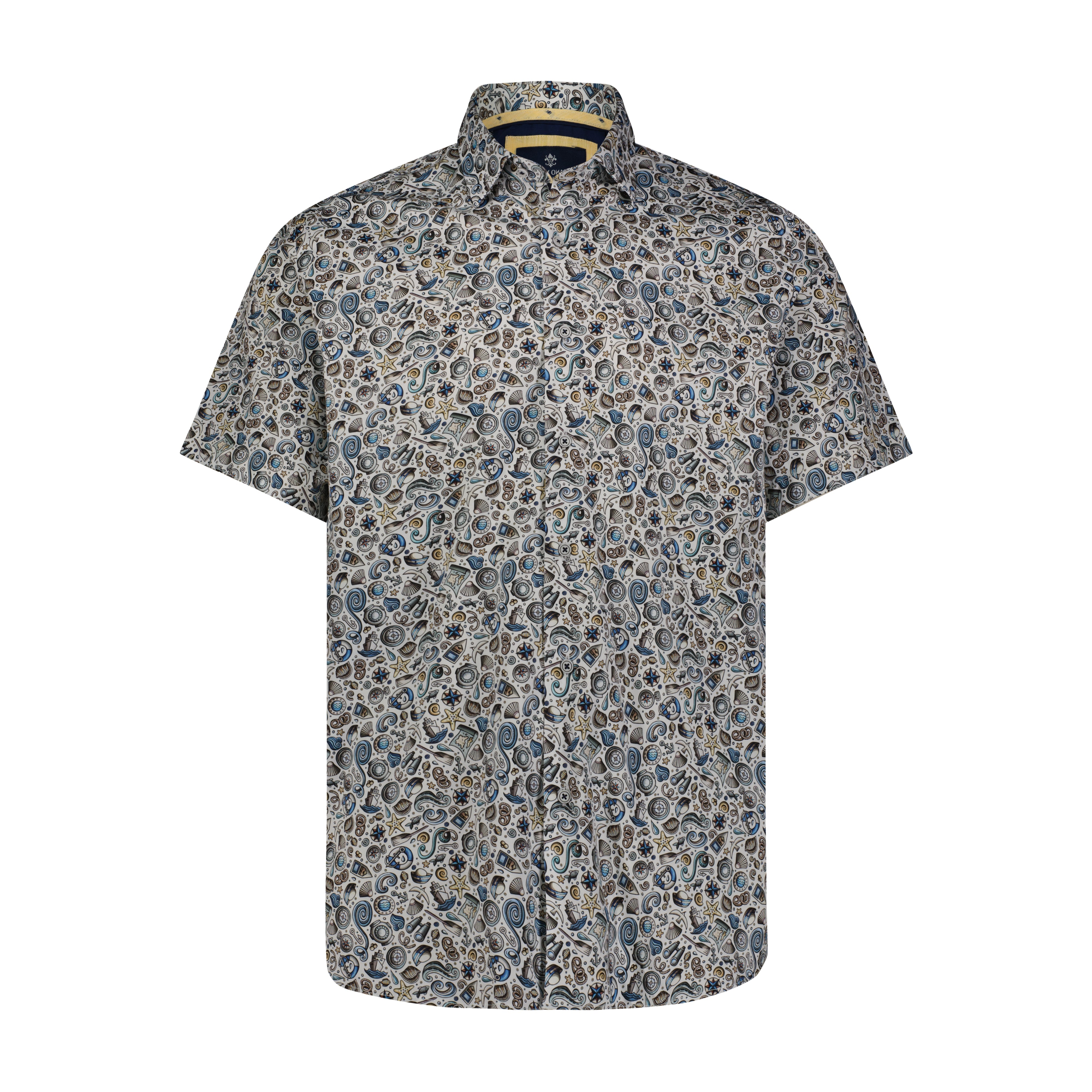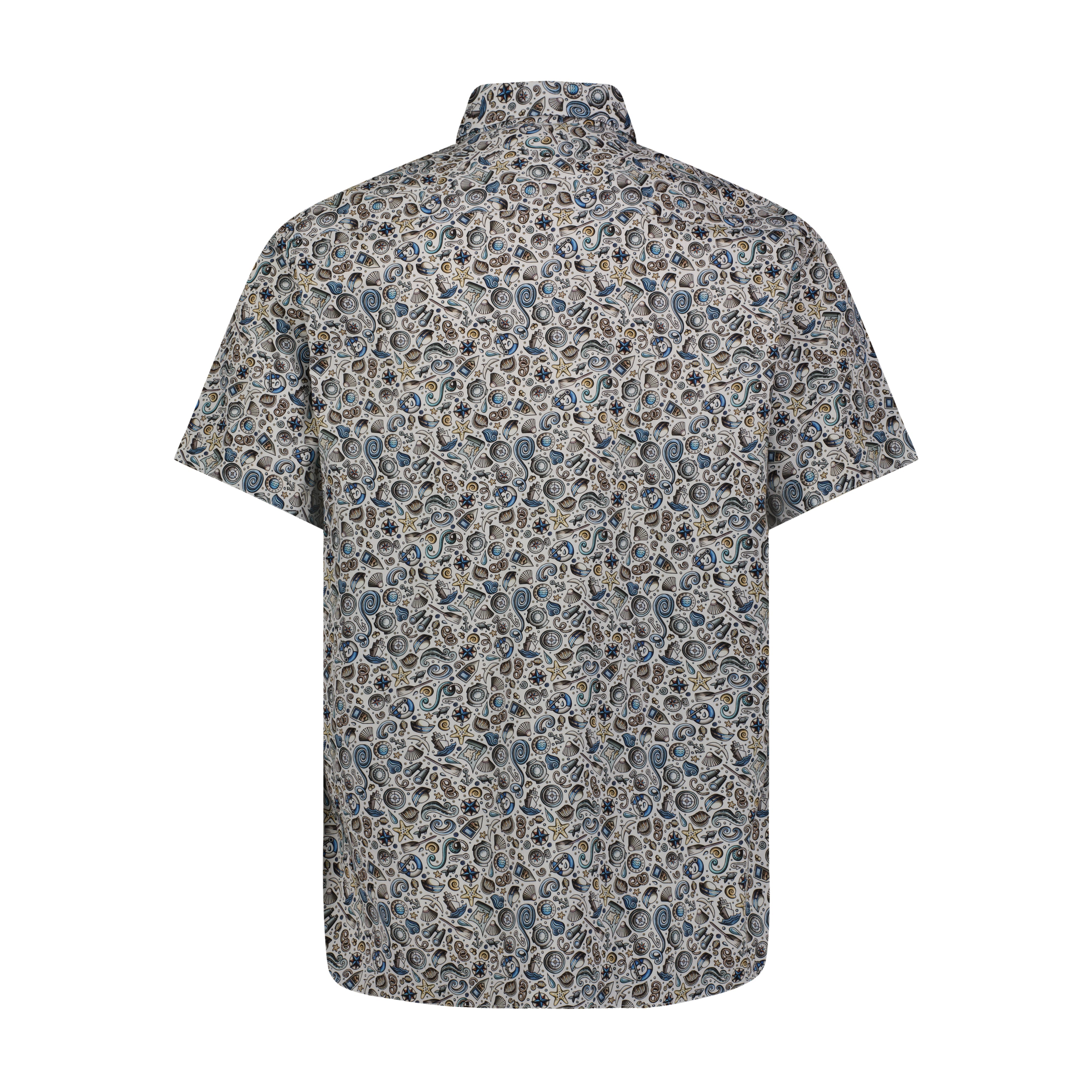 Blue and Khaki Shell Print Short Sleeve Shirt