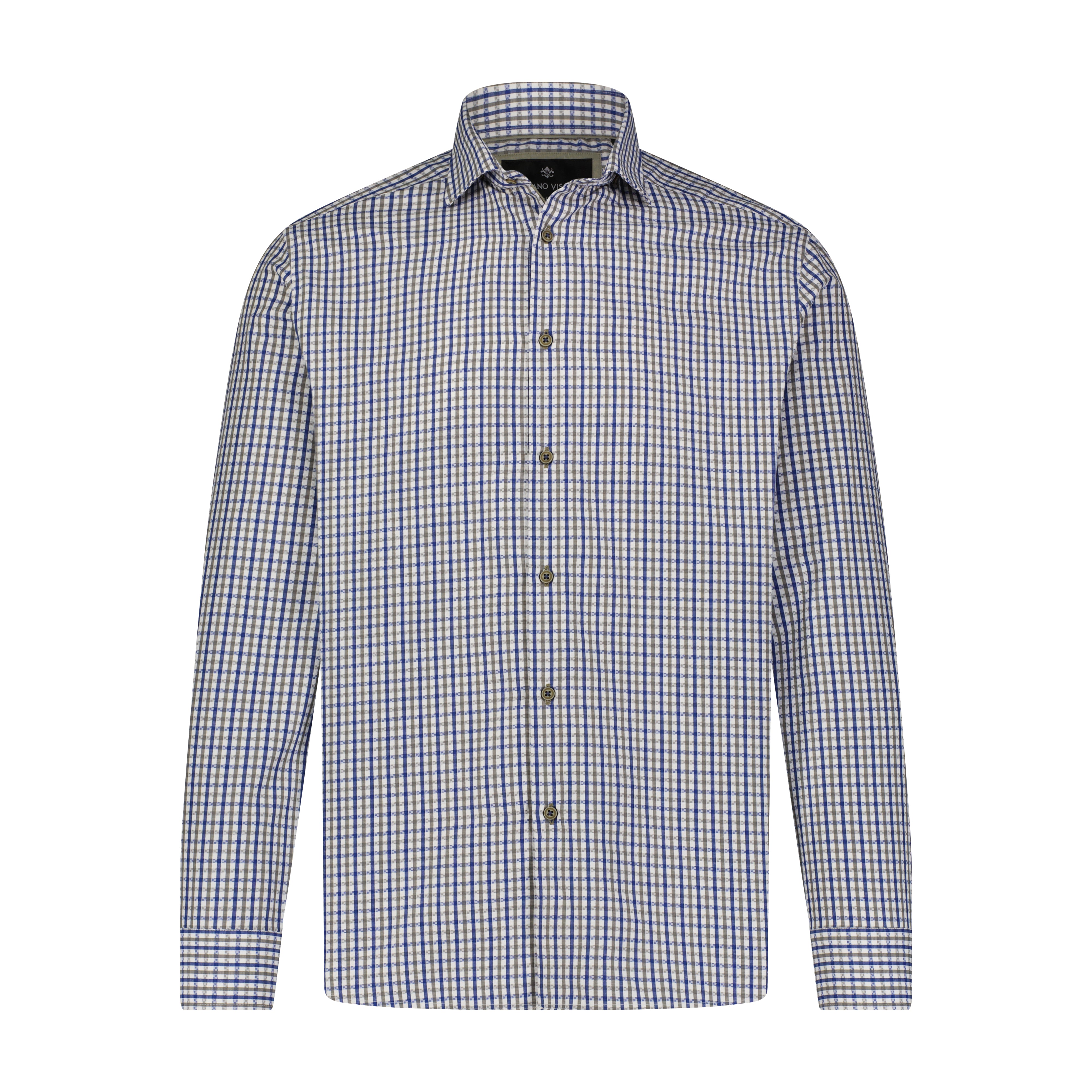 Experience timeless sophistication with Blue Check Long Sleeve Shirt by Luchiano Visconti. Crafted from luxuriously soft cotton dobby woven, this piece features printed detail in the inner collar, inner cuff, and inner yoke. Enjoy supreme all-day comfort with this piece's special comfort fit.