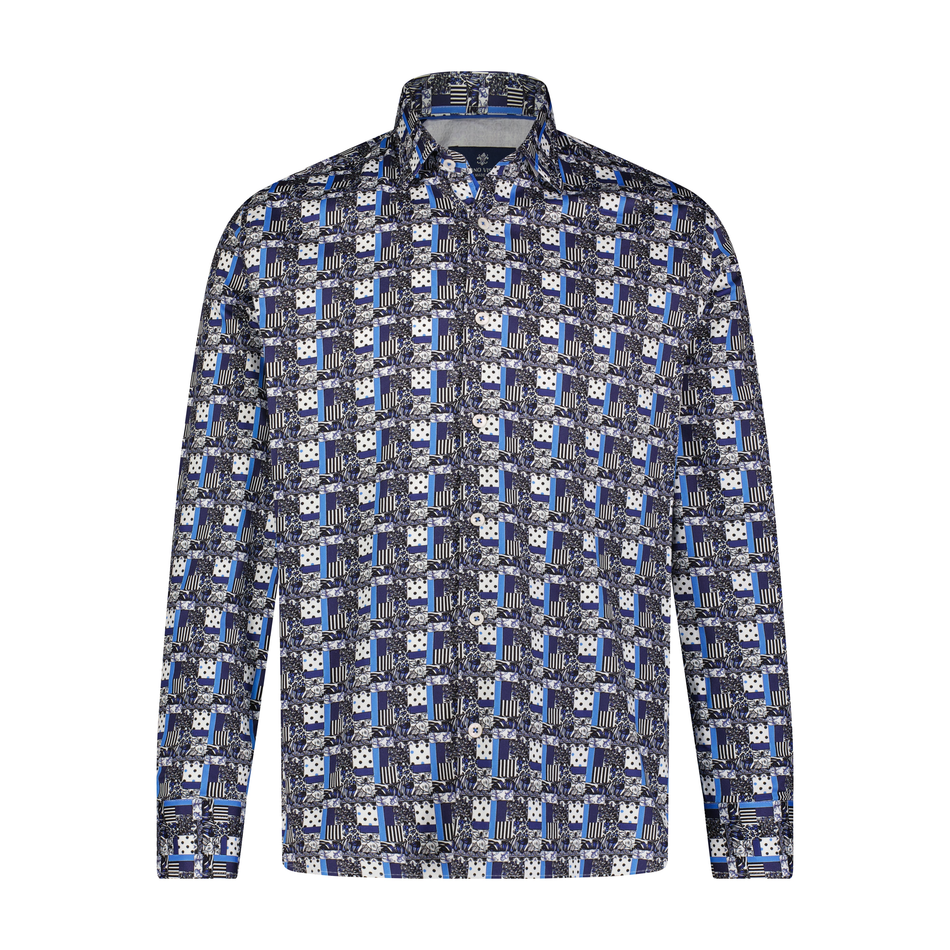 Blue, Navy, and White Multi Print Long Sleeve Shirt