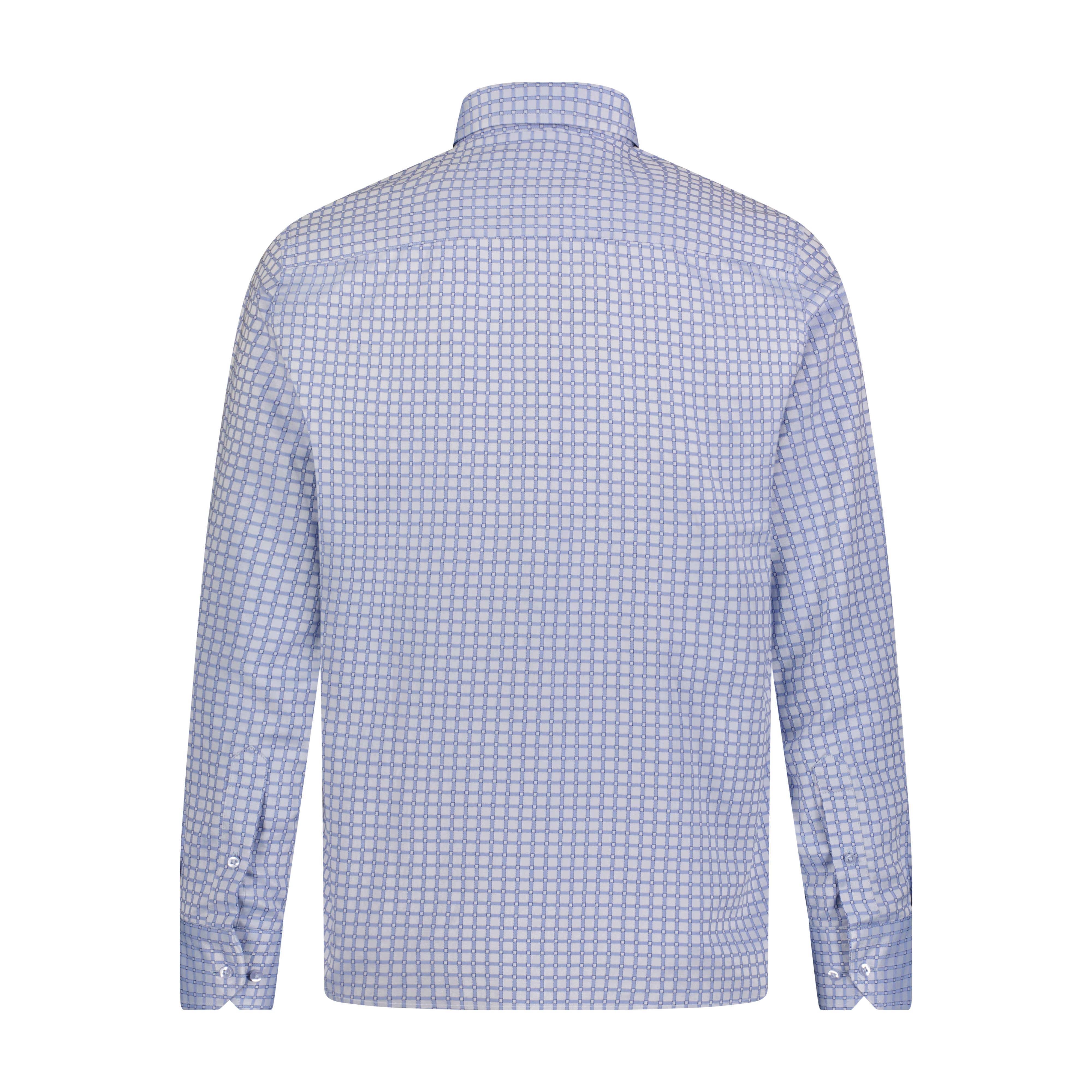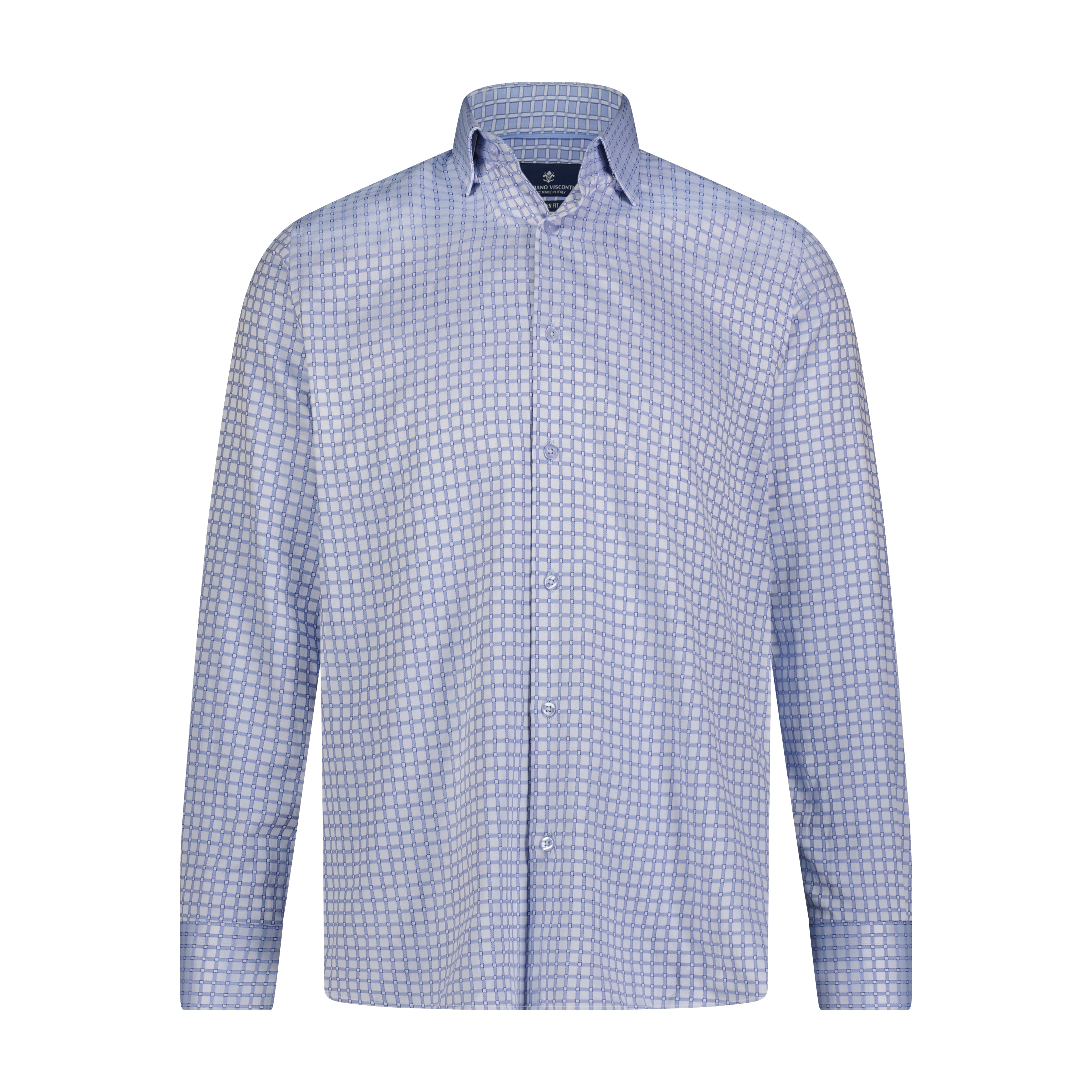 Lite Blue and Navy Small Check Print Long Sleeve Shirt