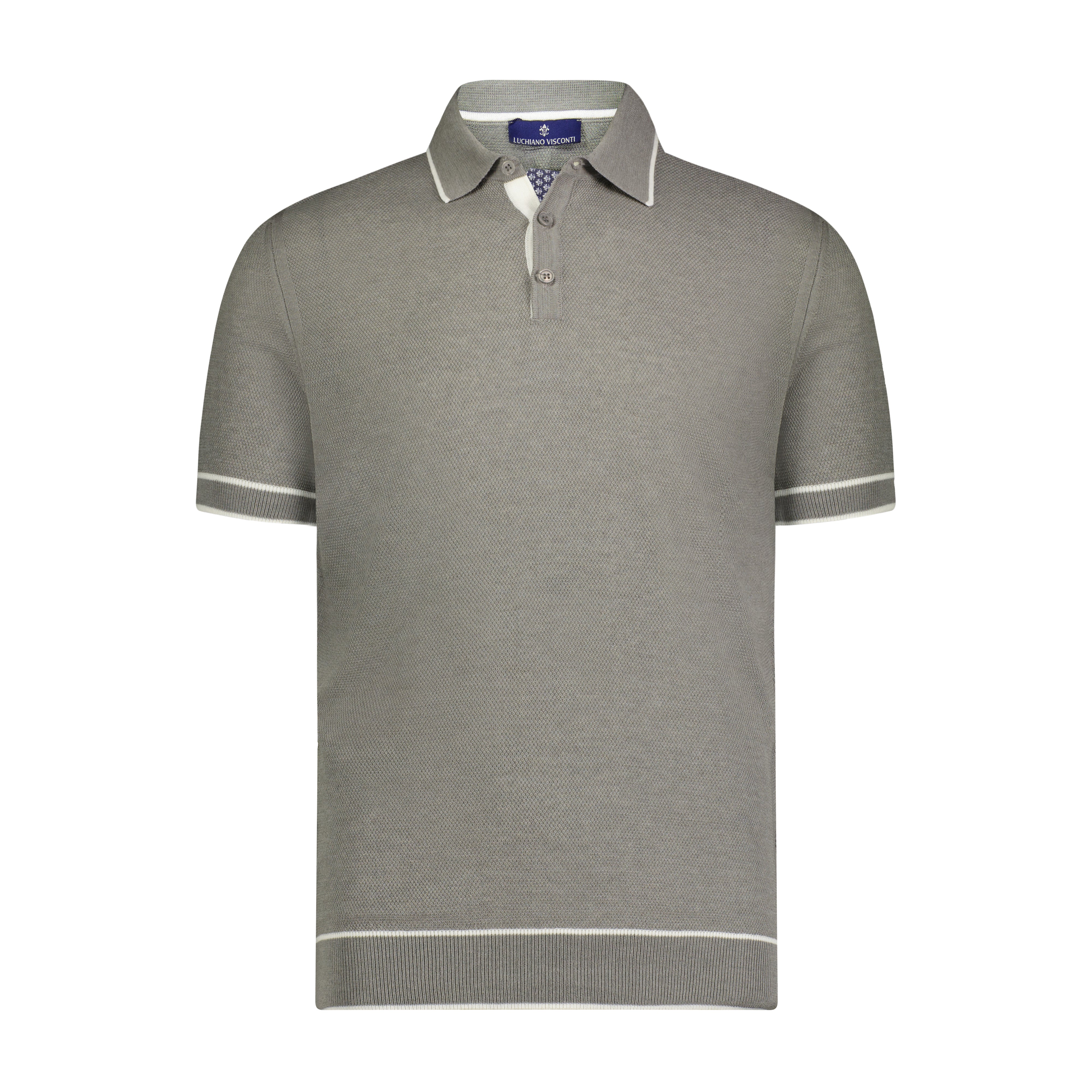 Melange Grey with White Trim Short Sleeve Knit Polo