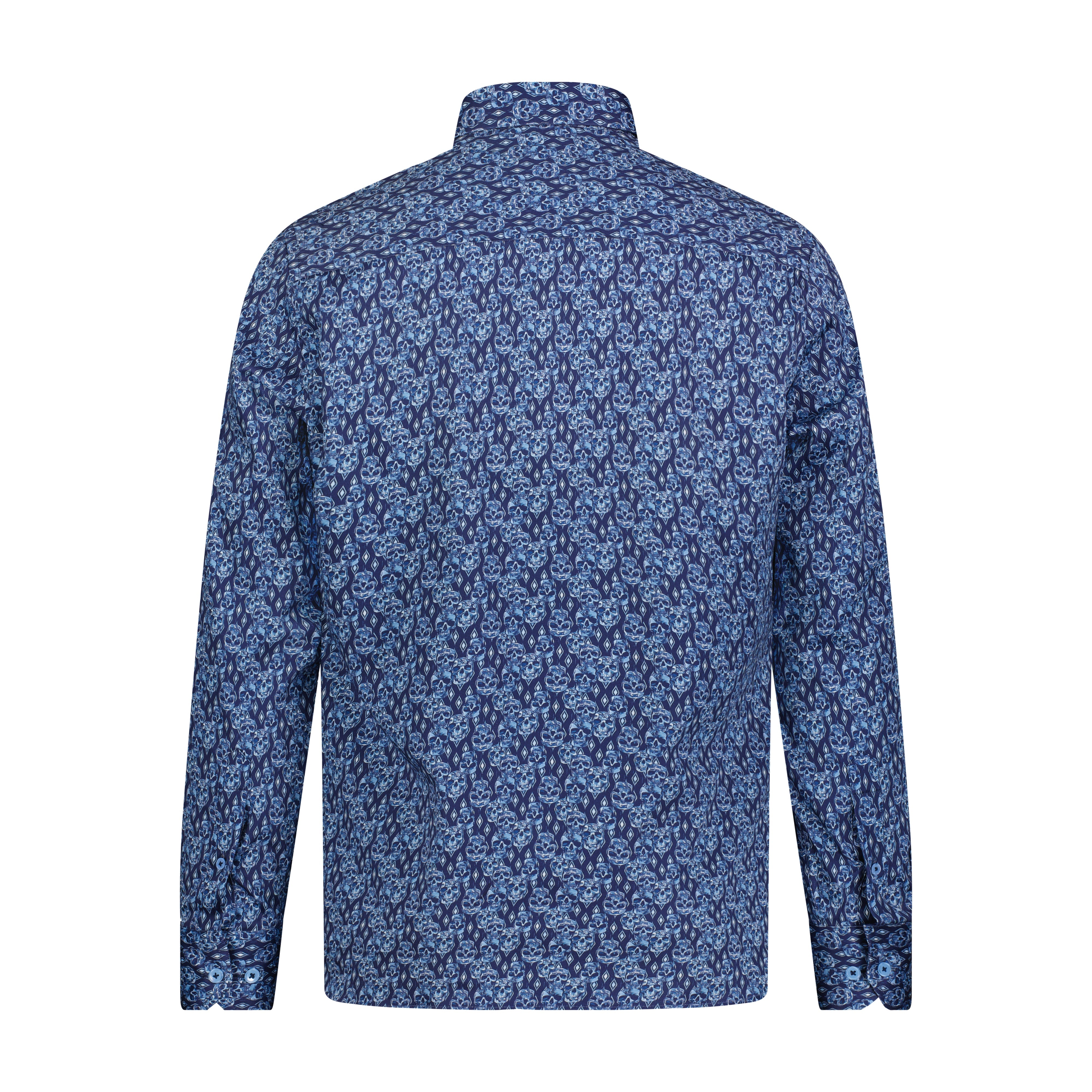 Navy and Lite Blue Skull Print Long Sleeve Shirt