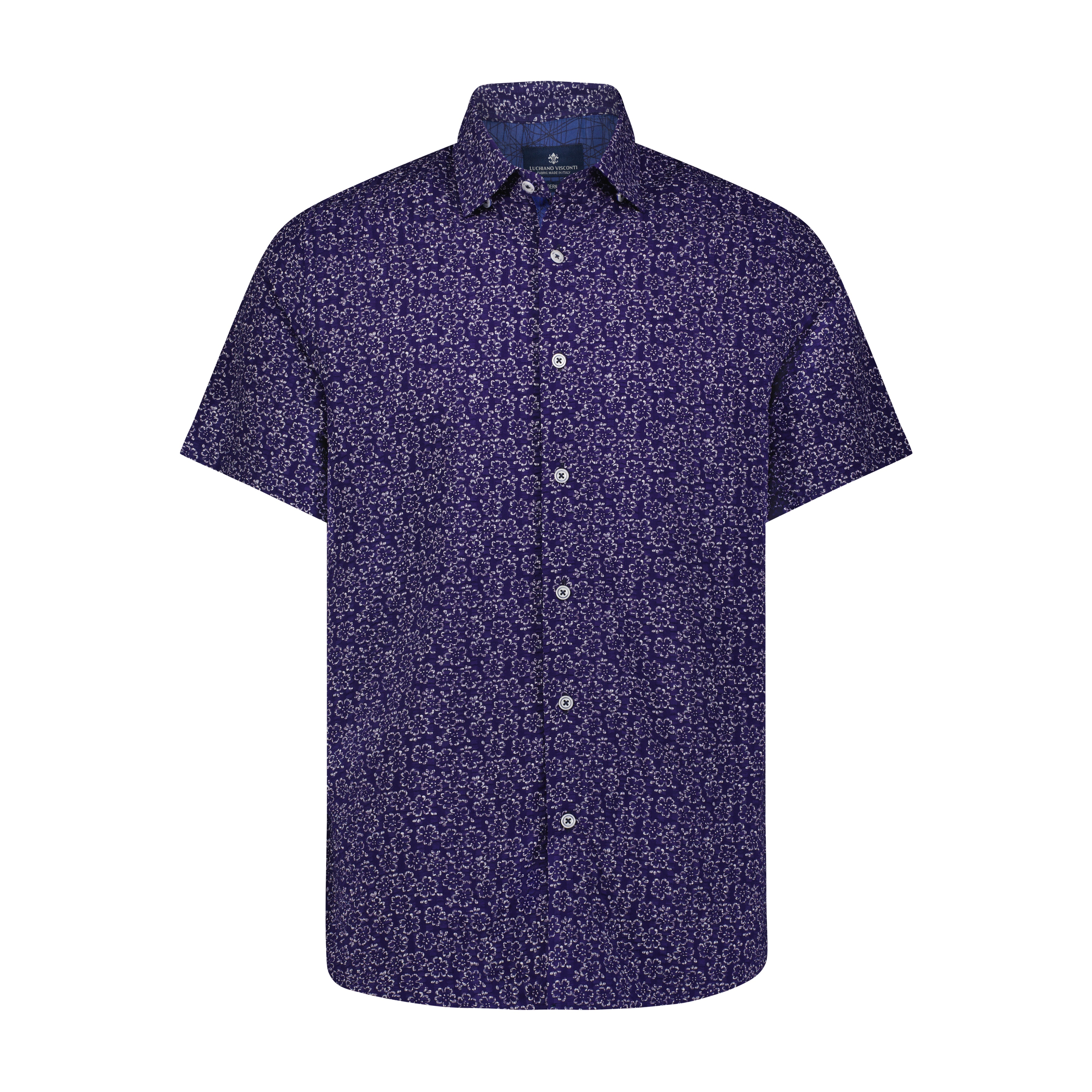 Stunningly crafted with Luchiano Visconti's signature modern fit, this Navy Floral Shirt features a unique twisted organic cotton jacquard floral dobby seer sucker effect with intricate details in the inner collar, yoke, front button stand, and cuff. Reveal your exclusive style with this luxurious shirt.