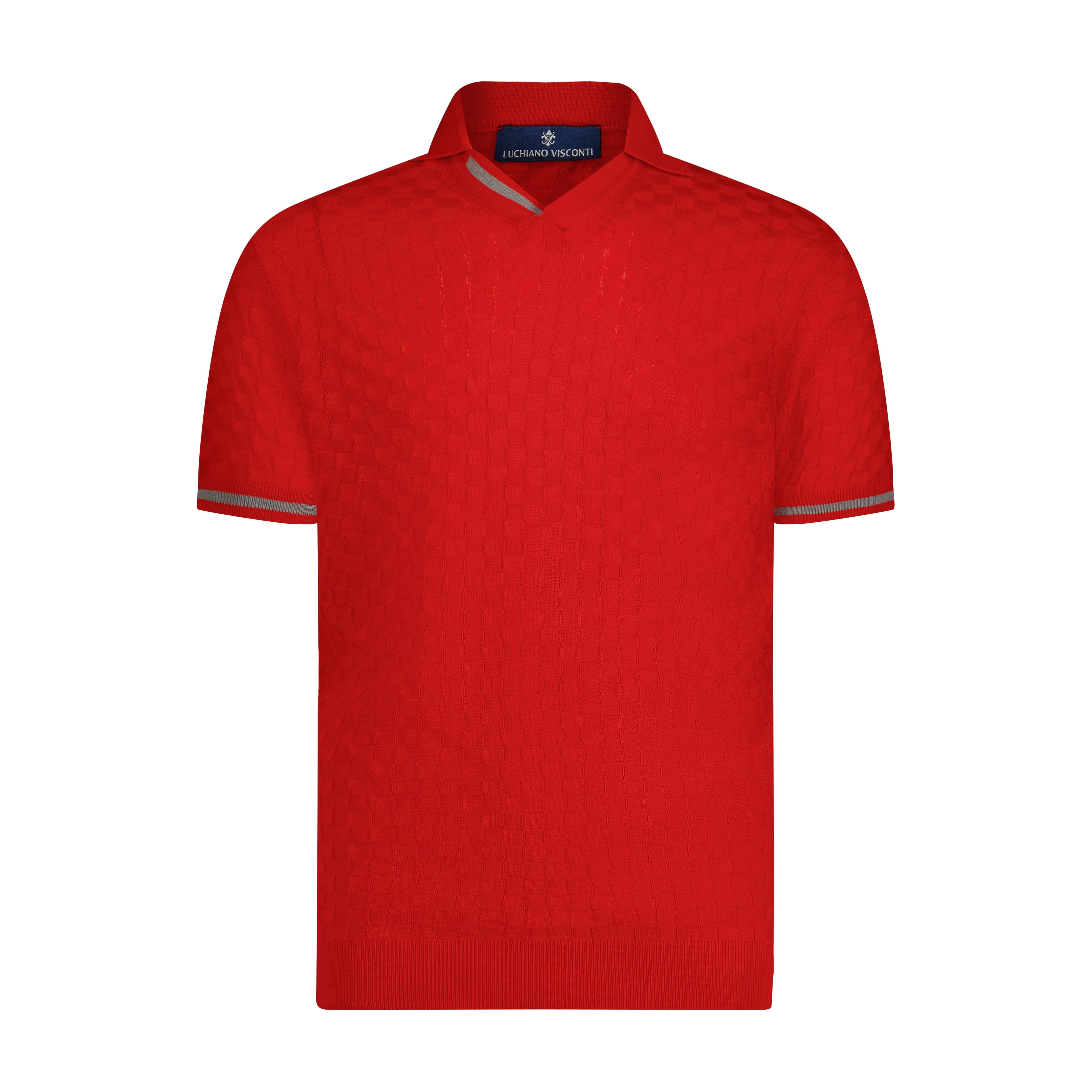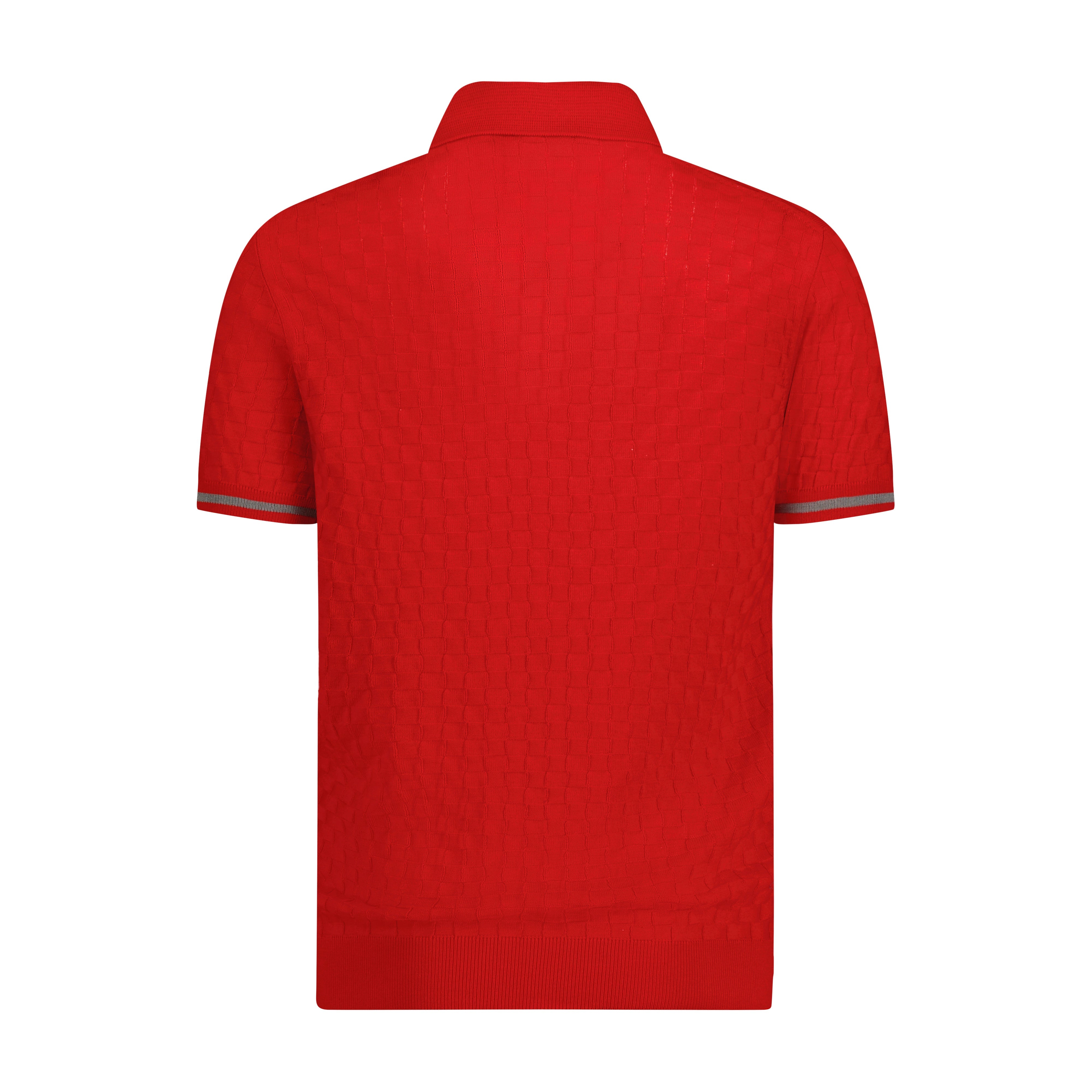 Red with Melange Grey Trim Textured Short Sleeve Knit Polo